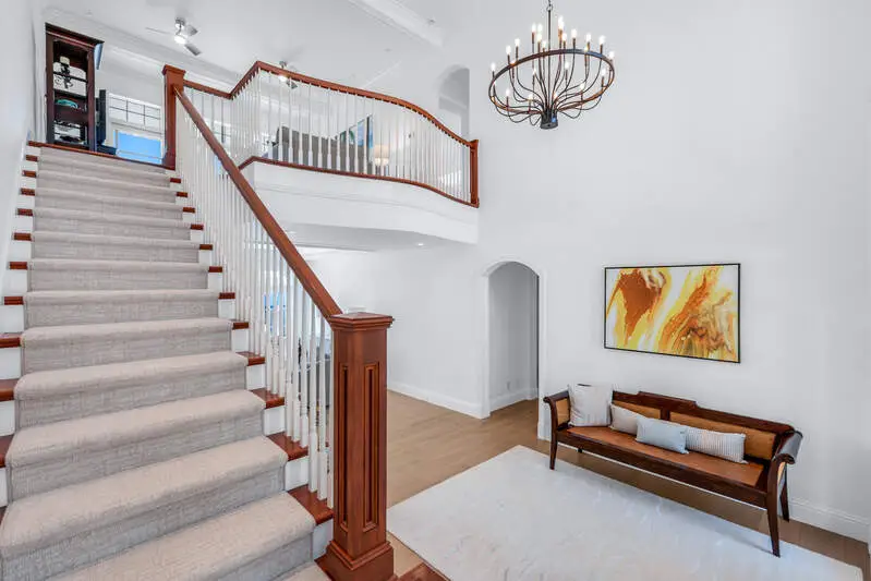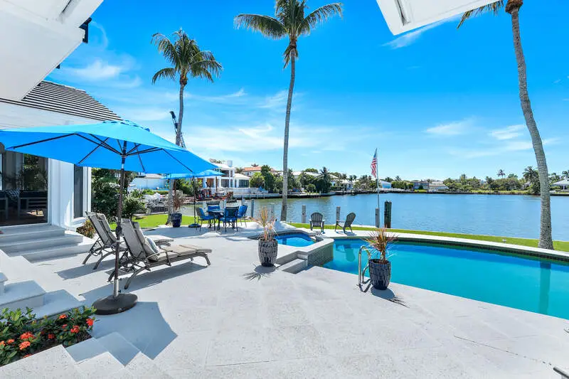 Gorgeous waterfront home on Hurricane Harbor in The Moorings - less than a mile to the private Moorings Beach. Enjoy the delightful wide bay southern exposure views from every room & breathtaking sunset every evening. Open floor plan providing one level living on the first floor & plenty of room for guests. 20' vaulted ceiling foyer with a grand staircase and balcony, opening to unobstructed water views. This home is a seamless blend of elegance, tropical warmth, and traditional touches. A mix of fine wood trim craftsmanship and modern Florida living. Entertaining and cooking is a pleasure in the updated kitchen with large island, bar, wine cellar & walk in pantry. Wolf, Sub-Zero and Dacor appliances. This home has been extensively upgraded. Secured with electric storm shutters. New roof. The seawall has been replaced in 2021. Take your choice to sip morning coffee from the breakfast nook, lanai or pool deck as you overlook the bay and swaying palms! This is truly your own self-contained resort and yet super close to all amenities. Short boat ride to the Gulf via Doctors Pass. Come see this amazing home and make it yours.