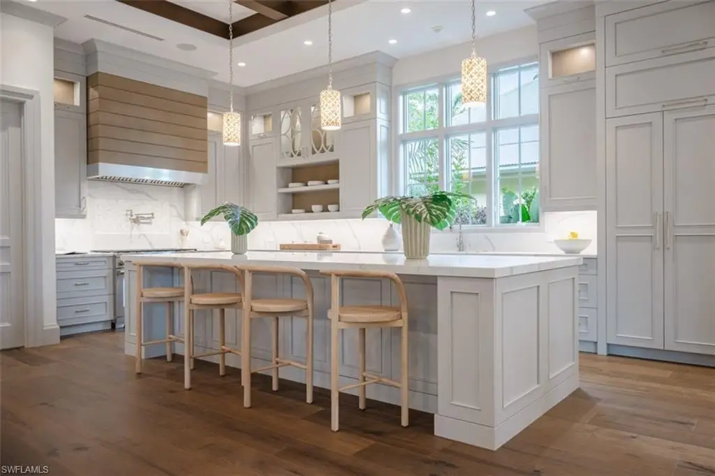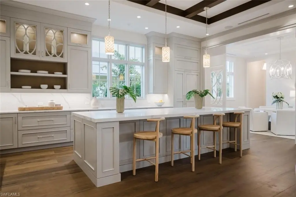 Experience luxury living at its finest in this new construction home nestled in the heart of sought-after Olde Naples. This Southern exposure two-story residence boasts five bedrooms plus den (optional sixth bedroom), five (two half) bathrooms, and multiple living areas, including an upstairs loft complete with its own kitchen. Indulge in the wine room, while the Butler's pantry complements the chef's kitchen featuring high-end appliances, including a gas cooktop and large island. With an open floor plan and a spa-like master suite, this home is designed for comfort and elegance. The outdoor kitchen, expansive outdoor living area, and resort-style pool with a spa offer an ideal setting for lavish entertaining. Waterside Builders, Falcon Design and DLY Design have come together with the projected completion date set for the beginning of 2025. Ideally located in the 100 Block of Olde Naples within walking and biking distance of downtown, 5th Avenue South's, and 3rd Street South's, fine dining, world-class, shopping entertainment, and white sand beaches.