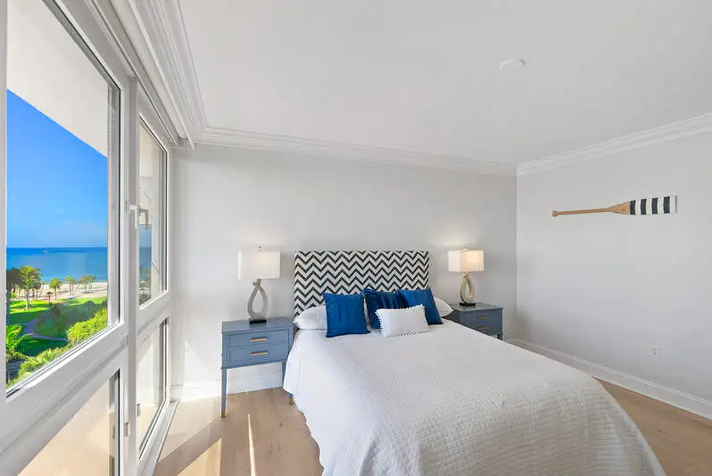 Bay & Gulf views galore! An exceptional opportunity awaits in the heart of Park Shore with this beautifully renovated, furnished condo offering a myriad of breathtaking views of the bay and stunning Gulf sunsets. Ideally located in the fabulous Allegro just steps from private Park Shore beach access and a short stroll to the upscale boutiques and dining of Venetian Village. Enjoy peaceful walks along the scenic beachfront promenade, immersing yourself in the quintessential Naples waterfront lifestyle. Inside, the thoughtfully redesigned interior reflects a relaxed coastal elegance, filled with natural light and a calming ambiance. The open-concept kitchen and family room serve as the heart of the home, seamlessly flowing onto a spacious veranda through bi-fold doors-perfect for enjoying panoramic views by day and night. With two spacious bedrooms and two full bathrooms, every detail has been curated for comfort and style. Brand new air conditioning installed in September 2025 also adds to a seamless transition into this beautiful condo. Located in Allegro, a full-service building with 24-hour front desk staff, residents enjoy access to exceptional amenities including a beachside resort-style pool and spa, fitness rooms, outdoor kitchen with BBQ grills, a recreation room, craft room, and meeting spaces. Fabulous & recent extensive and modernized renovations to the lobby, atrium, and common areas have been paid through assessments, with the Milestone Inspection and Structural Reserve Study already completed. Walk into luxury every time you come home! Additional highlights include two private guest suites for visiting friends and family, making this residence not just a home, but a lifestyle. A grand chance to live where many others vacation!