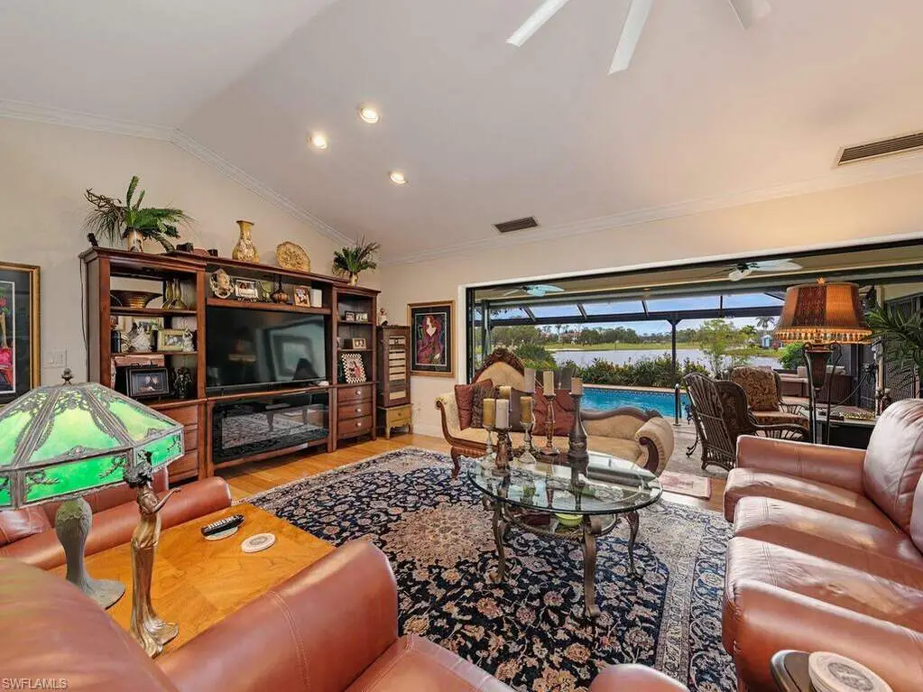 Welcome to your dream home! Enter this property through the charming front garden courtyard, complete with custom plantings, and prepare to be amazed by the stunning views that await you. The disappearing sliders in the great room open up to create an incredible 16-foot-wide panorama of the pool area, showcasing the serene lake and pristine golf course beyond. The great room is designed for versatility, offering ample space for both casual and formal living areas. It also includes room for a formal dining area, though the current owners have creatively used this space to accommodate a grand piano. Adjacent to this, you'll discover a chef's dream kitchen. Designed and crafted by the owner, a master carpenter, the kitchen features custom-built cabinets and a center island made from a single, full slab of quartz measuring an impressive 5x10 feet. The kitchen is further enhanced by upgraded stainless steel appliances, an 8x7-foot walk-in pantry-perfect for storing everything you need to host large gatherings-and a cozy breakfast nook with bay windows that offer picturesque views of the pool, lake, and golf course, often visited by graceful Snowy Egrets. Connected to the kitchen is a casual family room, an ideal space for relaxing, snacking, and watching TV. The home boasts three fully remodeled bathrooms, each updated with new frameless shower doors, vanities, and modern toilets. The luxurious master suite is truly a retreat, spanning 21x17 feet and featuring sliding doors that lead directly to the pool area. Step outside to the recently resurfaced pool area, adorned with elegant stamped concrete. The lanai includes a built-in summer kitchen and a new cage with large, unobstructed picture windows that frame the breathtaking views of the lake and golf course. The pool area also features see-through hurricane shutters that can be controlled remotely via your smartphone. This home is not only beautiful but also highly efficient. The owner has invested in 55 solar panels and two backup batteries, a $147,000 upgrade, resulting in an average electric bill of just $37 per month. Additionally, the property includes a private well, minimizing water costs. The garage is equipped with an electric car charger, and the driveway is scheduled to be upgraded with brick pavers in March. In addition, the roof was replaced in 2023 and the outside completely repainted in 2024. With every detail thoughtfully designed, this home offers unparalleled comfort, luxury, and sustainability. It's truly a property that has it all-and it's ready for you to call it home.