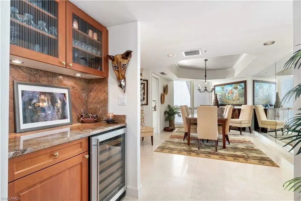 Beautiful beachfront unit with spectacular Gulf & Bay views in highly sought after Brittany at Park Shore. Situated in one of Naples' premier locations, this 19th floor condo offers coveted Western exposure and dual balconies allowing you to enjoy both sunrises & sunsets from the comfort of your home. This spacious condo has 3,274 sq ft under air, 3 bedrooms + den, 4 baths, large great room, formal dining room, dry bar with a built-in wine cooler, electric storm shutters, tile & wood flooring, 2 garage parking spaces & an additional storage room. Chef's kitchen includes tray ceilings, white cabinetry, granite countertops & high-end appliances including a Viking oven & cooktop, Bosch dishwasher & a professional-grade, extra-wide Sub-Zero fridge AND freezer. Primary suite includes direct-access to the balcony & a spa-like bathroom with dual vanities, separate jetted tub & bidet. Guest bedrooms offer en suite baths & joint balconies with endless Bay views. The Brittany is perfectly located minutes from downtown Naples & adjacent to Venetian Bay shops & restaurants, with gated/ 24-hour security, resort-style amenities including a newly renovated pool, beach-side grilling area with 2 large grills, icemaker/refrigerator, fire pit, tables and chairs, fitness center, massage rooms, tennis & bocce courts, game rooms & 4 guest suites. This condo is the ultimate beachfront retreat offering unparalleled panoramic views of the Gulf & Bay from the 19th floor!