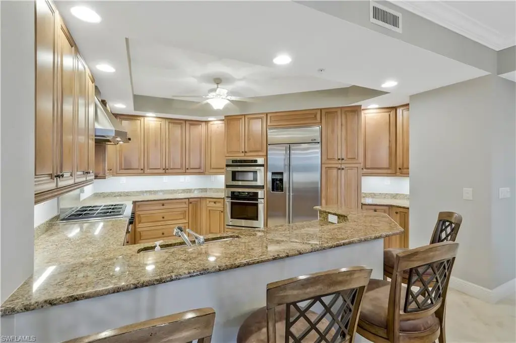 Step off your secured elevator into comfortable luxury in this beautifully appointed Grande Excelsior condo, located in the 5-Star Resort Community of The Dunes in Naples, Florida - recently ranked #1 in U.S. News & World Report's 25 Best Places to Live. This spacious 3-bedroom plus den, 3.5-bath residence offers a blend of elegance and functionality with an open floor plan that seamlessly connects the living, dining, and kitchen areas. The refined yet welcoming living area is perfect for both relaxation and entertaining. The chef-inspired kitchen features high-end appliances, custom cabinetry, and a breakfast bar ideal for casual meals or morning coffee. The adjacent dining area is designed for memorable gatherings with family and friends. The primary suite is a private retreat, complete with a spa-like ensuite bath and large walk-in closet. Two additional ensuite bedrooms provide comfort and privacy for guests or family. Step outside to a serene, oversized screened lanai and a beautifully landscaped terrace that overlooks a lush mangrove preserve - perfect for al fresco dining and peaceful evenings. Grande Excelsior residents enjoy two covered parking spaces, a private pool and spa, fitness room, and bicycle storage. But the crown jewel of this lifestyle is The Club at The Dunes, newly remodeled in 2019, and included in your HOA dues. The Club provides the lifestyle you deserve, featuring: Poolside resort-style dining and indoor casual dining, both offering savory menus, creative cocktails, and a curated wine list. A state-of-the-art wellness center staffed by an incredible team of fitness professionals and personal trainers, offering classes ranging from yoga and cardio to flexibility and aqua formats. Racquet sports facilities, including onsite tennis clinics and professional instruction. A vibrant calendar of social events throughout the year that fosters a true sense of community. Within walking distance to Vanderbilt Beach. Perfectly located near upscale dining, world-class shopping, championship golf, and the performing arts, The Dunes offers the best of Naples living in a pet-friendly, amenity-rich coastal community. Yes, you can truly have it all - at The Dunes.