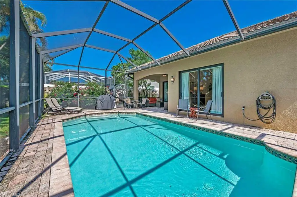 What are you waiting for? Significant price reduction and being offered turnkey furnished-this 3-bedroom plus den, 3-bath home with a two-car garage and screened pool is ready for you. Located in the sought-after 500 block of Naples Park, this move-in ready property combines quality finishes with a prime location just a short walk or bike ride to the beach to enjoy the beautiful sunsets. Inside, you'll find high ceilings, porcelain tile throughout (no carpet), and a gourmet kitchen with stainless steel appliances, granite countertops, and an oversized breakfast bar. The expansive great room is perfect for gathering, while solid wood doors, impact glass windows and doors, and a brand-new AC (2022) add comfort and peace of mind. The primary suite and guest rooms are spacious, with well-appointed baths. Step outside to a pavered, screened pool deck surrounded by lush landscaping and a fully fenced backyard-offering privacy and a perfect retreat. No HOA fees, Flood Zone X (no flood insurance required), and surrounded by newer homes with great curb appeal. This home is ideal for a full-time residence, seasonal escape, or investment property with proven rental history and future bookings already in place. Turnkey, upgraded, and in one of Naples' most desirable neighborhoods-schedule a showing today.