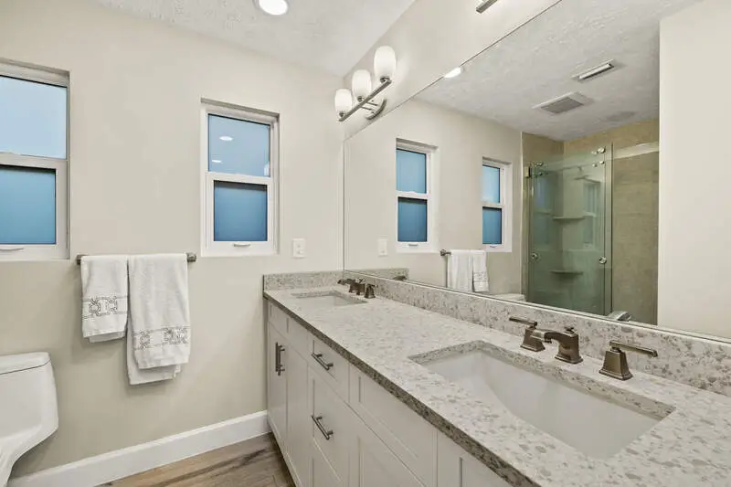 White shaker cabinetry with quartz counters