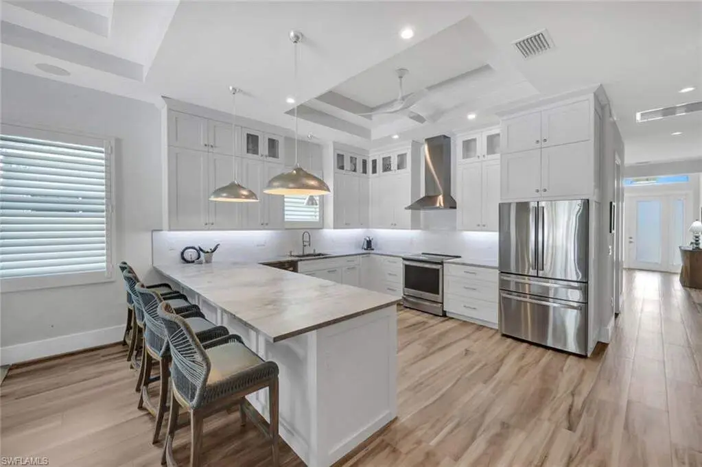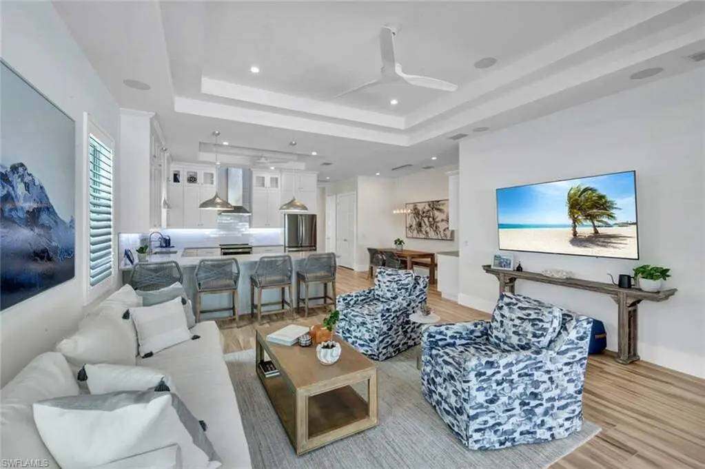 Coastal Elegance Meets Effortless Naples Living. Welcome to your coastal dream home, a spectacular newer construction offering 3 bedrooms plus a den, 4 full baths on an expansive lot and a half that provides space and privacy. Thoughtfully designed and masterfully crafted, every detail of this residence reflects the essence of refined yet relaxed Naples living. Step inside and immediately feel the sense of scale and sophistication. Ten-foot ceilings throughout are elevated by 11.5-foot double tray ceilings in the foyer, den, kitchen, great room, and primary suite. Wide-plank porcelain tile flooring through out, plantation shutters, and hurricane-impact windows and doors. At the heart of the home, the light-filled gourmet kitchen shines with white shaker cabinetry, honed Dolomite countertops, including an induction cooktop, convection oven, and microwave drawer. A custom double-door pantry offers abundant storage, while the built-in wine cooler and Sonos sound system make entertaining a pleasure. The smart home wiring allows you to control lighting, sound, and systems with a simple tap on your phone. Each bedroom retreat provides comfort and privacy, complete with California Closets and beautifully finished bathrooms. The primary suite features expansive vanity, a spacious walk-in shower, and sliding glass doors that open directly to the lanai. Step outside to your private garden oasis, where a sparkling saltwater pool are surrounded by lush tropical landscaping. Enjoy alfresco dining at the outdoor kitchen with gas BBQ, unwind in the outdoor pool shower, or host friendly games of bocce. Lanai is protected by electric roll down shutters for convenience and comfort. Additional highlights include a 2.5 car climate controlled garage for the car enthusiasts or hobbyist and a whole house generator powered by a 500 gallon buried gas tank, ensuring seamless living year round. Ideally located just minutes from Vanderbilt Beach and Mercato's premier shopping, dining, and entertainment, this home captures the best of Naples coastal luxury, stylish, smart, and ready to enjoy!