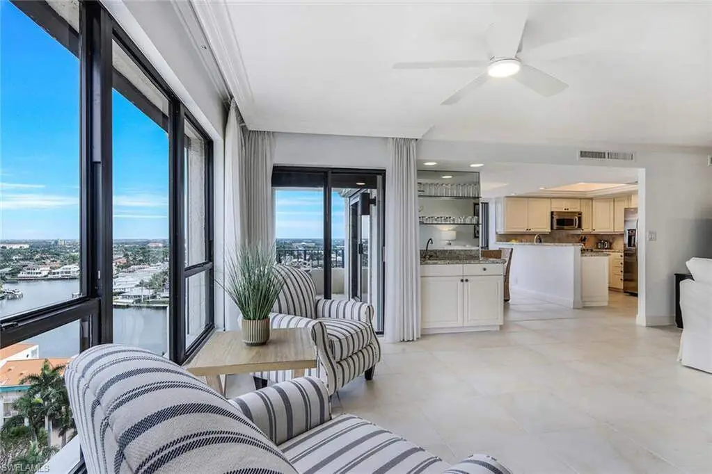 Perched high on the 16th floor, this updated 3-bedroom, 3-bath residence combines sophistication, comfort, and breathtaking views in the heart of Naples. Each bedroom features its own en-suite bath, offering the perfect retreat for owners and guests alike. Flooded with natural light through numerous windows, the residence spans 2,030 sq. ft. of air-conditioned living (2,300 total) and is offered turnkey furnished and ready for you to move right in. Two private balconies showcase stunning panoramas: on one side, the sparkling Gulf of Mexico and Naples' legendary sunsets; on the other, the shimmering waters of Venetian Bay and the Park Shore skyline. Life at Solamar is truly exceptional. Nestled on 4.5 acres of beautifully landscaped grounds, shared by only a select few prestigious Gulf-front condominiums, Solamar offers privacy and exclusivity. Just steps away, residents enjoy direct access to the pristine beaches of Naples and the coveted two-mile Park Shore boardwalk, a private waterfront promenade reserved exclusively for Park Shore residents. The recently updated amenities are designed for both relaxation and recreation: a 24-hour staffed front desk, an expansive recreation deck perfectly positioned for sunsets, two guest suites, a social room, library, wellness center, and fitness center. Outdoors, the recreation deck features a resort-style pool and spa, tennis court, and grills with dining area. A vibrant social calendar offers activities and events to suit every interest. Adding to its allure, Solamar is located just down the street from the renowned Village on Venetian Bay, one of Naples' premier waterfront destinations. With more than 45 luxury boutiques and waterside restaurants, the Village offers everything from casual waterfront dining to fine cuisine and upscale shopping-all just moments from your doorstep. This is more than a condo, it's an invitation to experience the ultimate Naples waterfront and beach lifestyle in Park Shore.