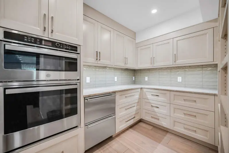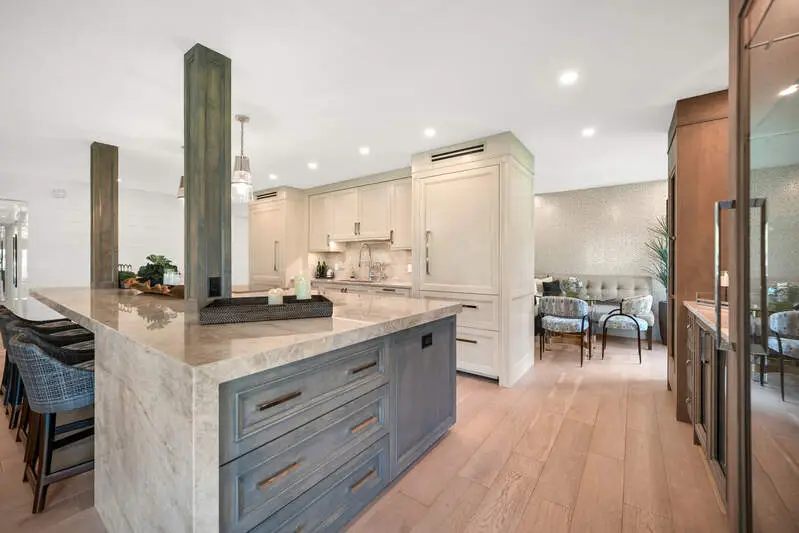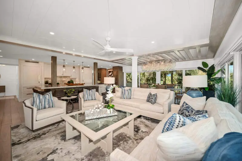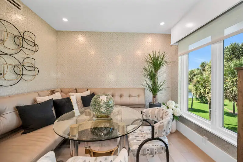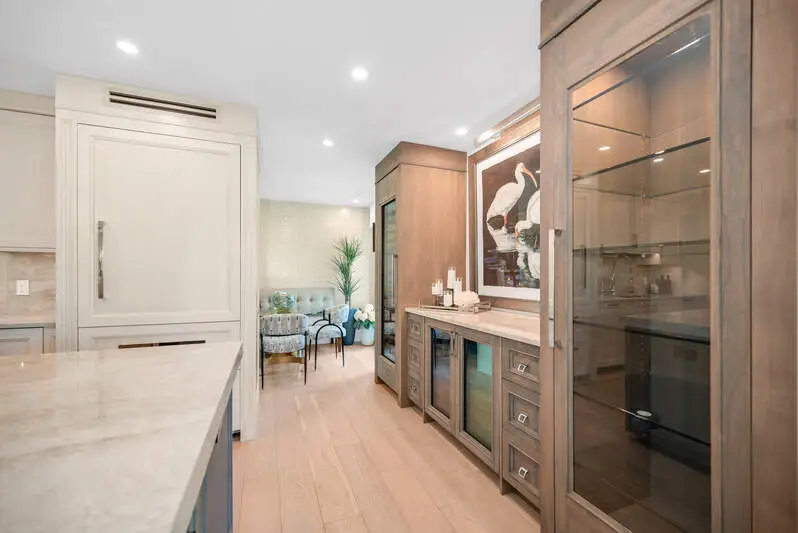 Absolutely Stunning! This top-floor, furnished three-bedroom residence with a wide balcony in an elevator building has been completely reimagined with a tailored renovation that elevates every detail. Wide-plank French oak flooring sets the stage for a bright, modern interior. The chef's kitchen boasts quartz countertops with a dramatic waterfall edge, a butler's pantry with double ovens and a warming tray, and exquisite tile inlays. Multiple built-in wine coolers, climate-controlled wine storage, and beverage fridges make entertaining effortless. The open living area showcases an elegant marble entertainment wall with an electric fireplace, custom shiplap accents, and floor-to-ceiling impact-rated sliders framing sweeping views. A cozy breakfast cove with leather seating and power shades offers the perfect place to relax. Every detail has been thoughtfully designed, from custom closets and a built-in desk to designer light fixtures and intricate tilework throughout. Spa-like bathrooms feature seamless glass shower doors, herringbone tile, and luxurious finishes, while the primary suite includes both a soaking tub and a walk-in shower. Refined finishes in every room create a true private oasis that embodies modern elegance. Additional highlights include a fantastic golf cart with a lithium-ion battery and a dedicated golf cart storage area with custom cabinetry. Residents have exclusive access to the newly constructed state-of-the-art 5-star Clubhouse and practice facility, making this property a golfer's paradise. A golf cart and dedicated cart garage are included, conveniently located next to your assigned covered parking. Set within a stunning 200-acre gated community, you'll enjoy beautifully landscaped grounds and mature trees lining the roads. This community offers unlimited golf on an 18-hole Arthur Hills course, as well as five inviting pools, four tennis courts, bocce, croquet, and a dog park. This condo is a true gem, just minutes from the vibrant shopping and dining of 5th Avenue and Old Naples. Purchase of a Wilderness Country Club membership is required and immediately available, offering you an effortless transition into this luxurious lifestyle.