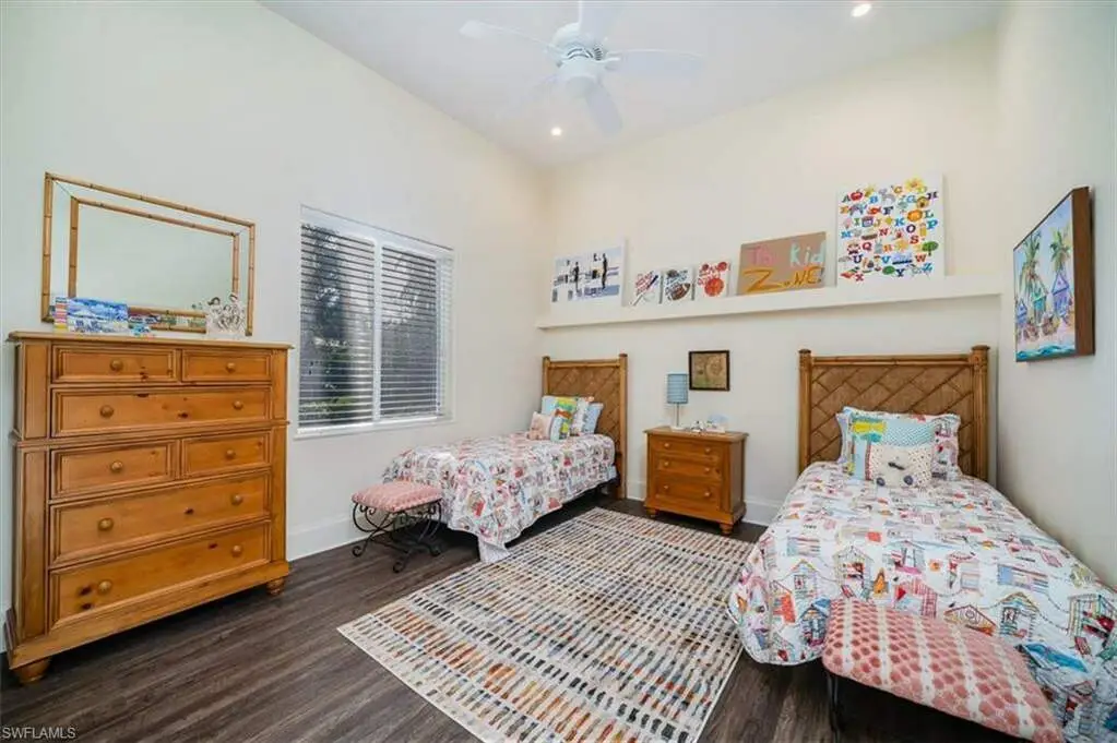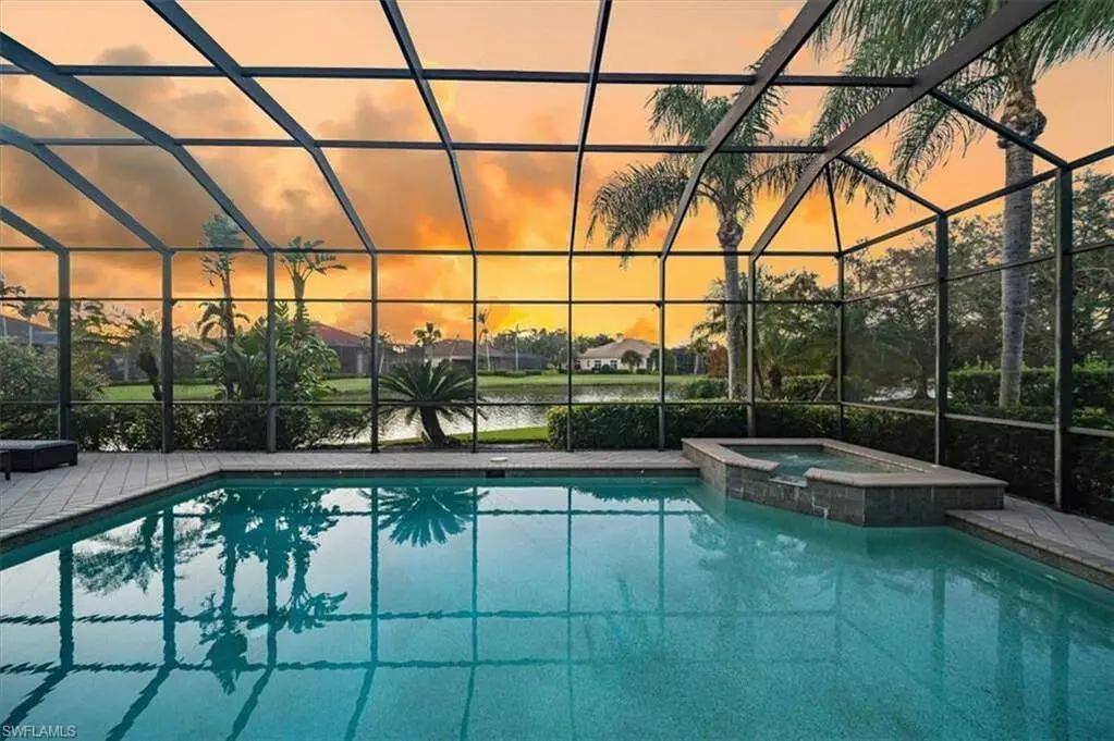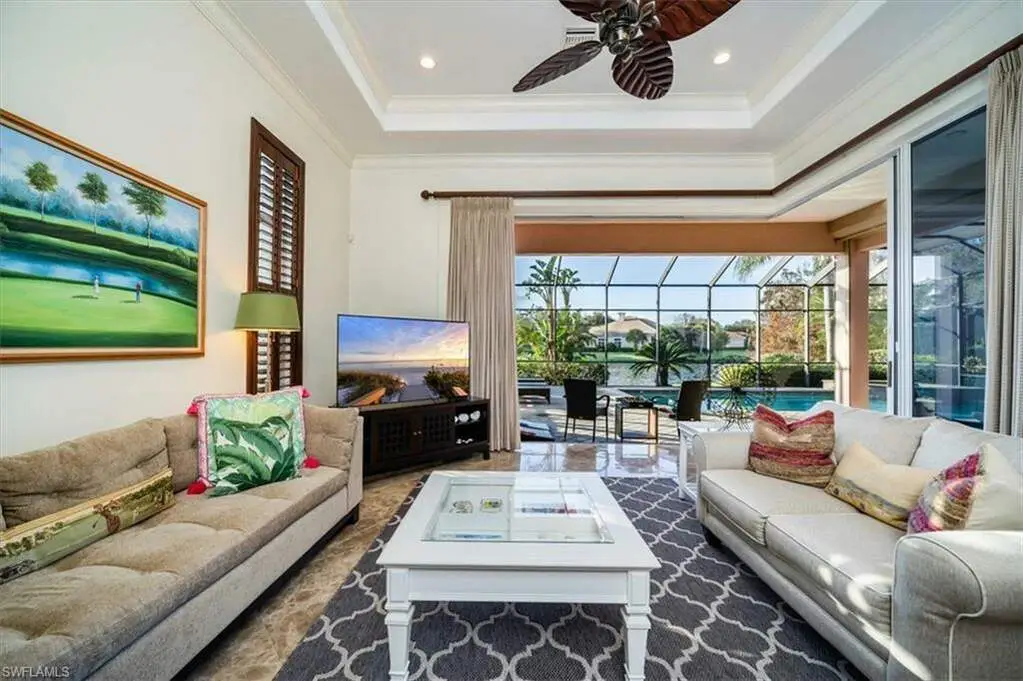 Nestled behind the gates of the prestigious Vineyards Country Club, this custom-built residence is a rare gem that showcases exceptional craftsmanship, thoughtful design, and a host of luxury upgrades that set it apart. December 2023 NEW ROOF!! Nestled behind the gates of the prestigious Vineyards Country Club, this custom-built residence is a rare gem that showcases exceptional craftsmanship, thoughtful design, and a host of luxury upgrades that set it apart. Designed by a discerning builder for personal use, the home offers numerous high-end extras not commonly found, including soaring ceilings that create a grand sense of space and scale, extensive custom millwork, and refined architectural details throughout. From the moment you arrive, the curb appeal is striking-with a stately governor's paver driveway, side-entry 3-car garage, and lush, mature landscaping enhanced by fresh mulch, all situated on a quiet, oversized cul-de-sac lot offering unmatched privacy and picturesque lake views. Inside, the elegant marble-floored foyer opens to a gracious living room with coffered ceilings and seamless flow to the expansive screened lanai, ideal for indoor-outdoor living. The home's layout is both functional and inviting, with formal and casual dining areas, an updated white kitchen with solid-surface countertops, a breakfast bar, and a glass-enclosed breakfast room bathed in natural light. The oversized family room and outdoor summer kitchen make entertaining effortless. Each guest suite is a private retreat, with luxury vinyl "wood look" flooring, custom double closets, and individual bath access that have been remodeled and updated. The owner's wing is a sanctuary, offering two walk-in closets, lanai access, and a spa-inspired bathroom with a walk-through shower and dual vanities. An additional flexible space serves as a fourth bedroom or office, and the third garage bay has been transformed into an air-conditioned bonus room, ideal as a game room, gym, or "mancave." A prime location within one of Naples' most established and amenity-rich communities, this residence is the perfect blend of elegance, comfort, and thoughtful upgrades.