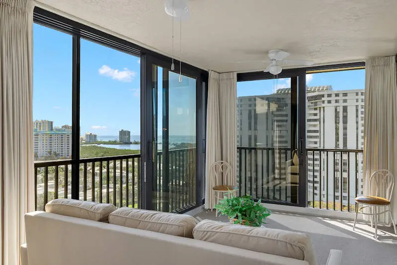 Welcome to this desirable 12th-floor condo in the highly sought-after Chateaumere community of Pelican Bay, where breathtaking panoramic southwest views of Clam Pass, the Gulf of Mexico, and mesmerizing sunsets with twinkling lights of downtown Naples await you. This stunning 2-bedroom, 2-bathroom fully furnished unit with a spacious enclosed lanai is truly a paradise in the sky. The open-concept floor plan ensures a seamless flow from room to room, enhancing comfort and convenience. The living area is bathed in natural light, thanks to large impact-resistant windows and sliding glass doors that frame extraordinary views. The eat-in kitchen boasts full views of the white sand beaches, making every meal a scenic delight. The spacious Master Suite is a tranquil oasis, featuring an en-suite bathroom with a double vanity and a walk-in shower. The guest bedroom and hall bath provide additional comfort for visitors. Residents of Chateaumere Royale enjoy access to 3 swimming pools, a fitness center, 3 guest suites, bike storage rooms, and a community room with a full kitchen and pool table, along with all the amenities of Pelican Bay. Pelican Bay offers tram service to 2 private beach clubs equipped with chairs umbrellas and kayaks, as well as 2 private restaurants open for lunch and dinner. The club features 18 tennis courts, another fitness center, and even yoga on the beach. Chateaumere is set on nearly 10 acres and is conveniently located less than 2 miles from Artis Fine Arts Theatre and Waterside Shops with fine dining and shopping. Centrally located near Mercato, Whole Foods, Fresh Market, and much more! Easy access to downtown Naples, renowned for its fine dining, shopping, and beautiful beaches.This condo comes with a rental with income.