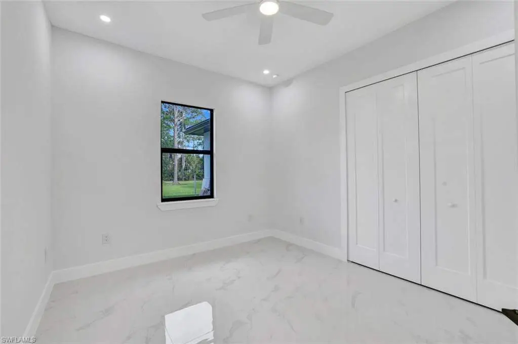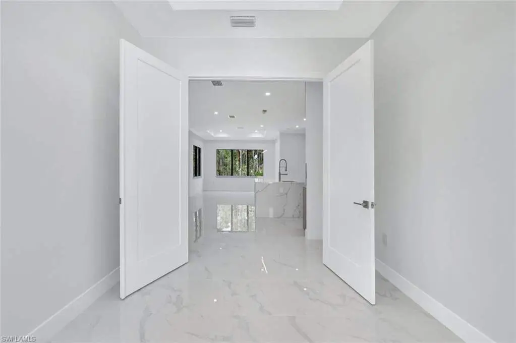 This property is 100% uplands and sits in an exceptionally prime location just off Wilson Boulevard. Surrounded by other beautiful homes, it offers the perfect setting to build your dream residence in one of the most desirable areas of Golden Gate Estates. Inside, the home showcases a stunning modern kitchen with sleek white upper cabinets and warm wood-tone lowers, creating a sophisticated two-tone design. Expansive quartz countertops with waterfall edges and a full-height designer backsplash add a touch of luxury, while the oversized island with a contemporary gold pull-down faucet blends style and function. High-end stainless steel appliances, recessed lighting, and a minimalist pendant fixture complete this bright, open space-perfect for everyday living and entertaining. The master bathroom is equally impressive, featuring floor-to-ceiling tile, a luxurious free-standing tub, and dual showers, creating a spa-like retreat within your own home. The home also boasts a huge outdoor lanai with a fully equipped outdoor kitchen, ideal for gatherings and enjoying the Florida lifestyle year-round. A thoughtfully designed residence that balances modern elegance with timeless comfort in an exceptional location.