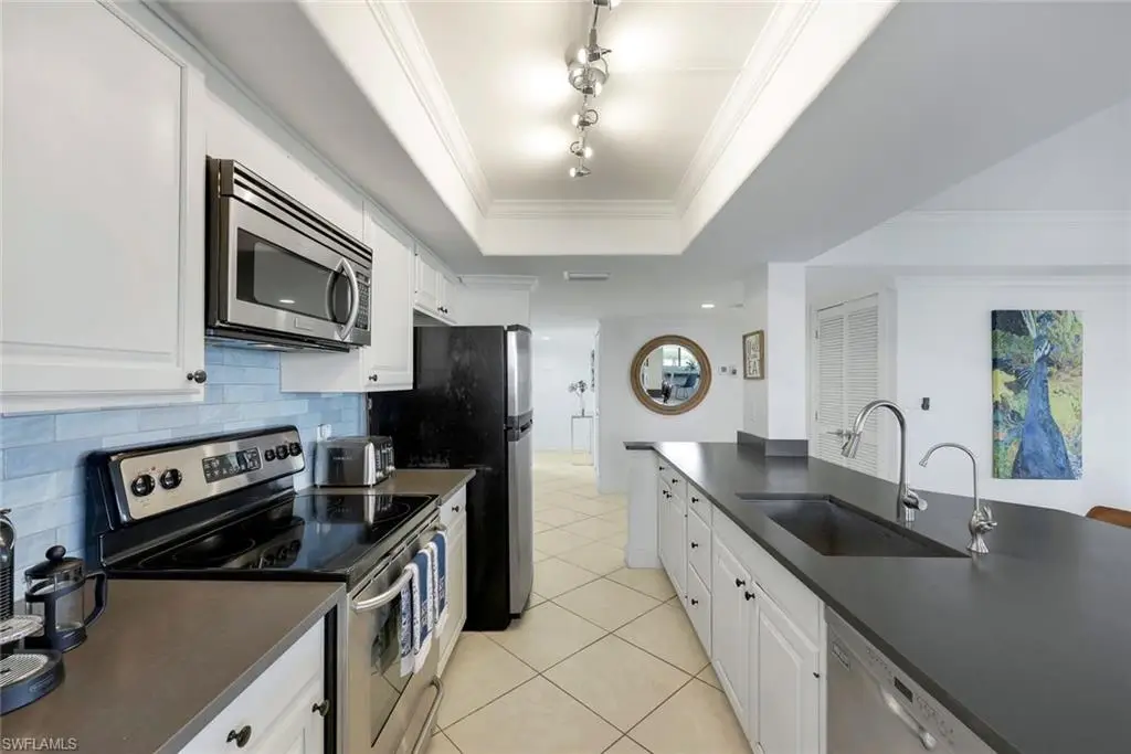 Luxury Living with Panoramic Gulf and Bay Views! Welcome to your dream coastal retreat - a coveted NW corner condo on the 11th and top floor, offering breathtaking Gulf and Bay views from every room. This remodeled gem features an open-concept kitchen and an electric grill on the terrace, perfect for enjoying the outdoors while preparing meals. Step onto the wraparound lanai or the private master balcony to soak in serene sunrises and stunning sunsets over the mangroves and preserve. Located just a short stroll from Vanderbilt Beach and Wiggins Pass State Park, this condo combines tranquility with unbeatable convenience. Inside, you'll find abundant storage with a walk-in closet and additional spaces conveniently located across the hall and near the newly updated lobby. The building has also been enhanced with modern social and fitness rooms, providing a fresh, inviting atmosphere for residents. Surf Colony I offers resort-style amenities, including covered parking, a heated pool, and a tiki hut overlooking Turkey Bay, teeming with herons, dolphins, and manatees. Stay active with Pickleball, Tennis, Bocce, and kayak leasing spaces, while marina boat docks are available for lease, subject to availability. HOA fees cover everything except electricity, ensuring hassle-free living. For investors, the property offers flexibility with leasing allowed up to 9 times per year with 30-day minimums. Tucked away on Naples' "Best Kept Secret," the serene Bluebill Ave. peninsula, you'll enjoy peace and privacy while being just minutes from world-class dining, shopping, and entertainment. Experience coastal living at its finest - paradise with all the modern conveniences!