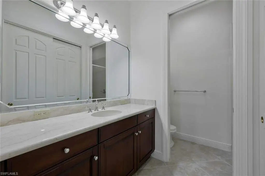 The Isabella floor plan stands out as the largest villa in the Chestnut Grove subdivision of Hammock Isles, situated within the Vineyards community. Its expansive layout and beautiful features offer an ideal setting for comfortable and elegant living. The main living areas have diagonal tile flooring, while the bedrooms and den are finished with carpeting. The home comprises three bedrooms and a den, intentionally designed to maximize privacy and convenience. Every bedroom is equipped with its own en-suite bathroom, providing a private oasis for family members and guests alike. In addition, a separate powder room is available for visitors, ensuring everyone's comfort and privacy. This home's outdoor amenities include a private pool and spa, perfect for relaxation or entertaining guests. A two-car garage provides ample parking and storage space, adding to the home's functionality and appeal. The villa has had one owner and is awaiting your personal touches to make it truly your own. With its spacious design, it serves as a perfect canvas to reflect your unique style and personality. The property is conveniently located at the south end of the Vineyards, in close proximity to Publix, local restaurants, hospitals, and easy access to I-75.
