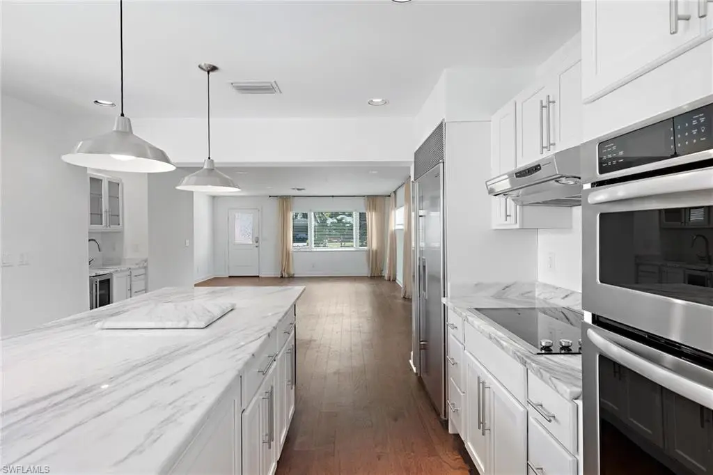 THE PERFECT TRIFECTA! High & Dry - Prime Naples Location - Luxuriously Move-In Ready Experience the best of Naples living with this tastefully reimagined cottage home - high and dry in the coveted X-500 flood plain (no flooding from any past storms), featuring a brand-new resort-style pool and spa, and ideally located in the heart of Lake Park. A rare blend of classic charm and modern refinement, this 3-bedroom, 2-bath home has been meticulously redesigned to deliver effortless luxury and coastal comfort. Step inside and you're greeted by gleaming hardwood floors, a gourmet marble kitchen with Sub-Zero refrigeration, and custom cabinetry that speaks to timeless craftsmanship. The adjoining wet bar - also finished in marble - is perfect for entertaining with sophistication and ease. Each bathroom exudes a spa-like ambiance with marble vanities and elegant fixtures, while the open, airy floor plan creates seamless flow between the light-filled interiors and the serene outdoor retreat. Out back, your private oasis awaitsùa brand-new pool and oversized spa surrounded by 17" x 24" x 1" marble decking that radiates resort-level style. Whether basking in the Florida sunshine or gathering under the stars, this setting defines Naples living at its finest. Tucked away on a quiet, rarely traveled street, you'll enjoy unbeatable proximity to Naples' world-famous beaches, 5th Avenue South, and 3rd Street South - where boutique shopping, art galleries, and exceptional dining are just minutes - or a short golf-cart ride away. Whether as your full-time residence, seasonal retreat, or a smart second-home investment, this home delivers the perfect balance of elevation, elegance, and location. Schedule your private showing today and experience why this Lake Park gem truly embodies the Naples lifestyle.