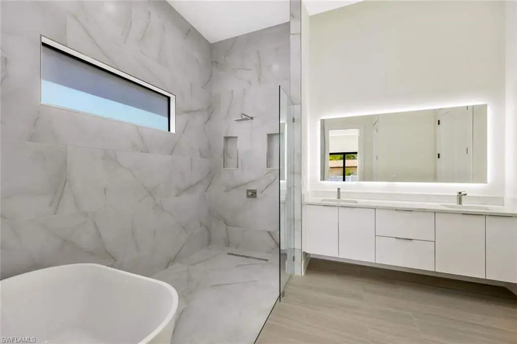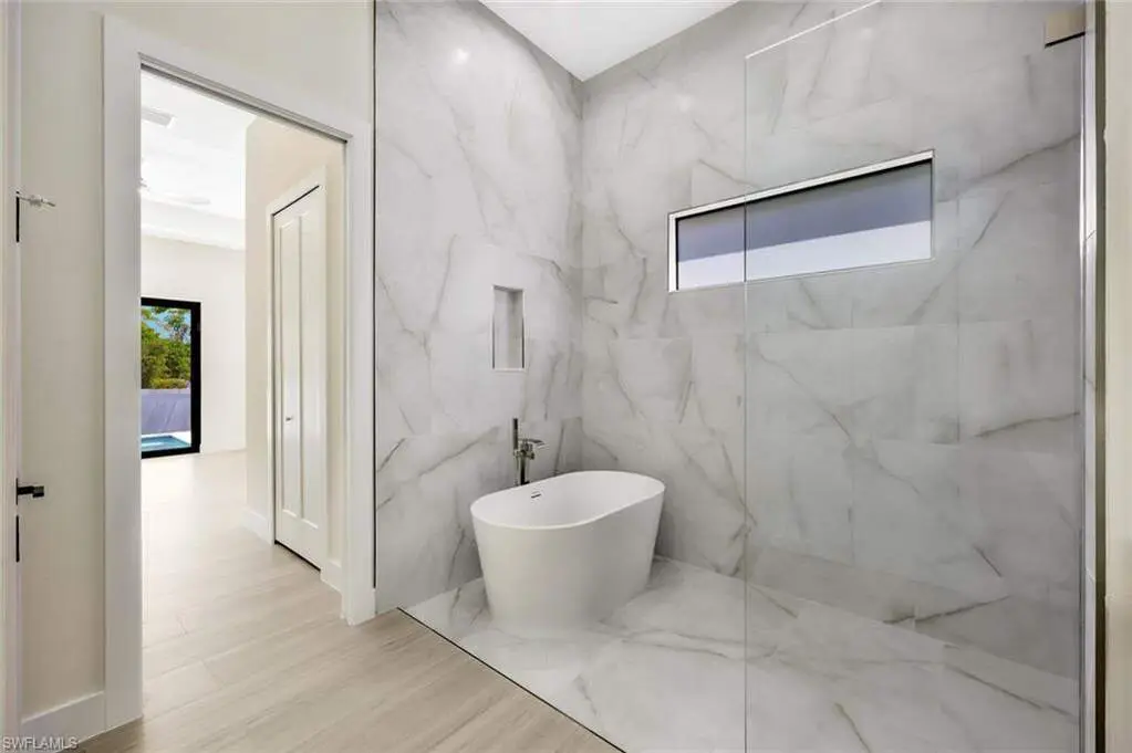 Experience elevated living in this modern Construction home featuring soaring 14-foot ceilings and a sleek, open layout. The kitchen is a true showstopper, outfitted with premium Bosch appliances and contemporary cabinetry that combines style and functionality. Located on a street undergoing a remarkable transformation with multiple new builds, this home offers a unique opportunity to be part of a rapidly evolving neighborhood. Just minutes from Waterside Shops and only 10 minutes to the beach, the location is ideal for convenience and lifestyle. Enjoy Florida living at its finest with a heated, saltwater pool and a fully equipped outdoor kitchen perfect for relaxing or entertaining year-round.