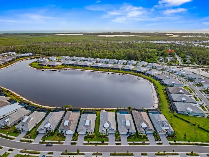 8791 Calypso is a superb single family home, nestled in undoubtedly one of the most popular communities in Naples, and offers both expansive water and west facing sunset views! This exceptional house includes a wealth of features and generous living room with high ceilings, upgrades galore, plenty of natural light and sense of space. A masterful fusion of modern coastal design and elegance, offering an extensive amenity-rich lifestyle with Pickleball, Tennis, Bocce, Fitness Center, Lap and Resort Pool, Restaurant, as well as miles of walking and biking possibilities. On entering this home the key reception areas flow effortlessly from the welcoming hallway, into a fabulous great room with bespoke kitchen, offering plenty of storage, walk-in pantry, quartz countertops and central breakfast island. Dining and living areas with sliding doors opening onto the lanai and pool area, (fabulous pool is in the process of being built - estimated completion November 2025) provide for al-fresco or inside dining and entertaining for family and friends. Four generous sized bedrooms, with the primary suite complete with built in wardrobes in the walk-in closets, and luxurious ensuite bathroom benefitting from dual vanities, walk-in shower and bath. Along with a fabulous study from which to work, there is also a good sized laundry room, powder room and integral double garage. The Isles of Collier Preserve is located next to Naples Botanical Gardens, Naples Pickleball Center, Bayshore Arts District and Bayview Park, fun local restaurants including the Celebration Park and is also minutes from downtown Naples dining, shopping and white sandy beaches.