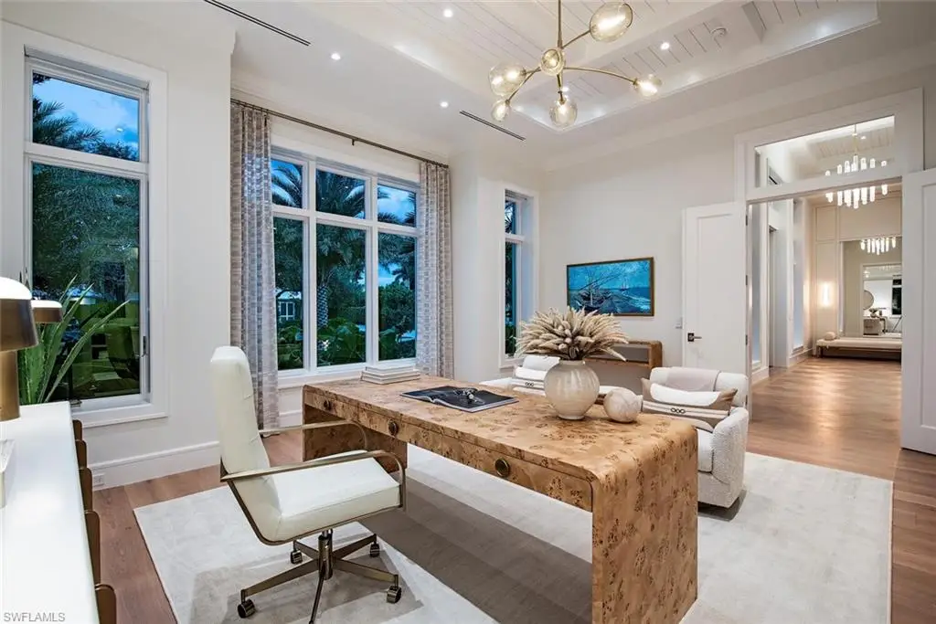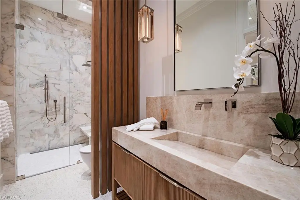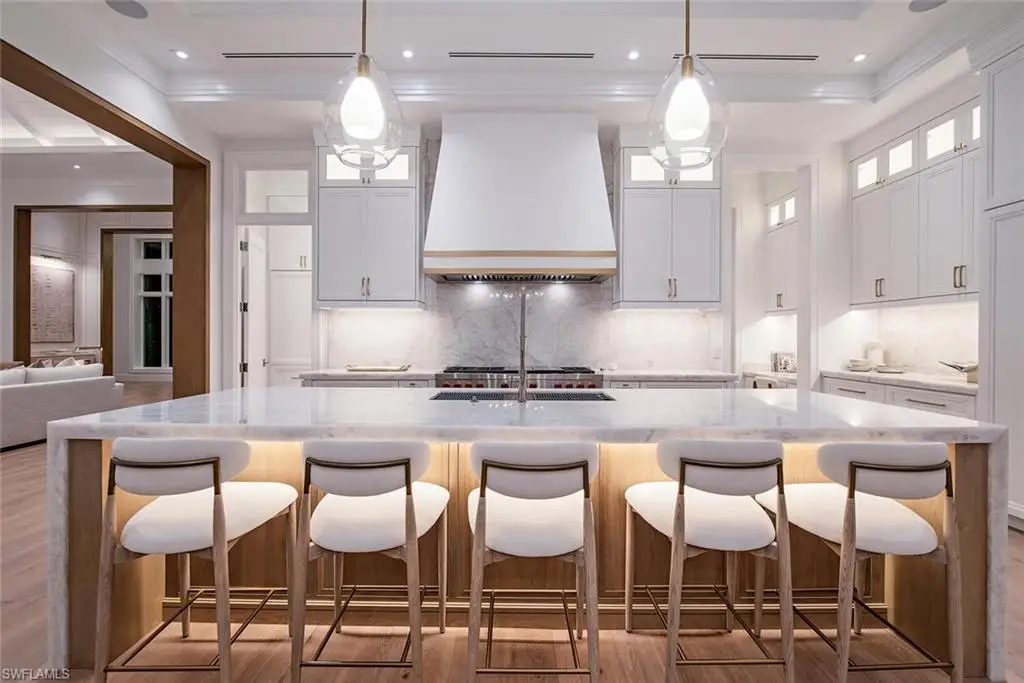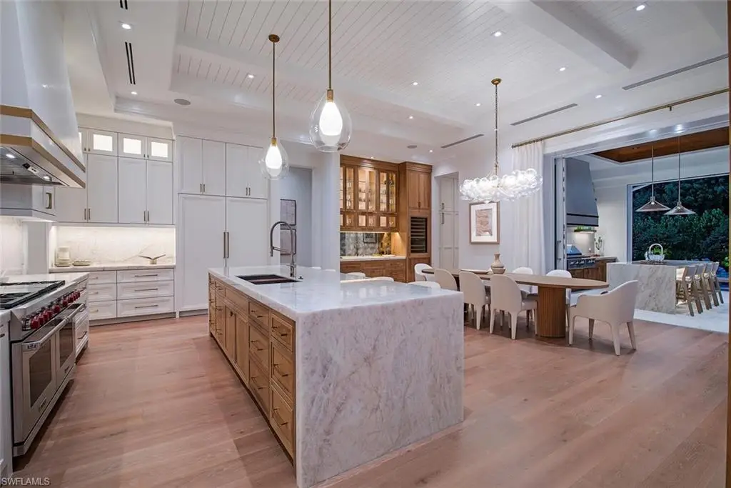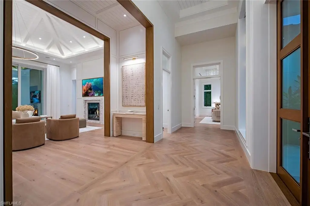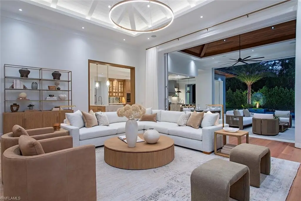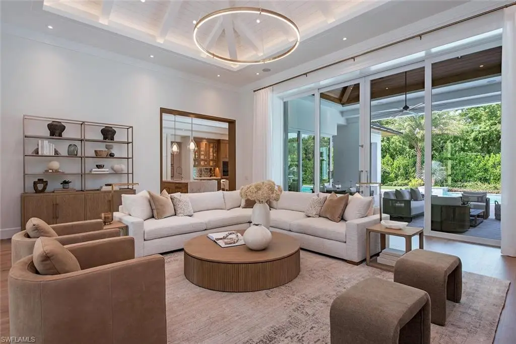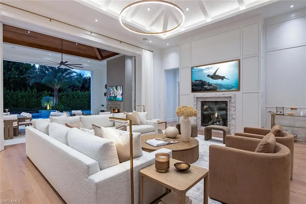 Presenting an exceptional new residence by the distinguished collaboration of Crayton Road Development, Falcon Design, Van Emmerik Custom Homes, and R & Co Designs. Set on a sprawling oversized lot with coveted western exposure, this exquisite home is ideally located in the heart of Coquina Sands - just moments from the pristine beaches, Old Naples, and the highly anticipated Four Seasons Resort. Nestled on the serene Nautilus Road, within a high and dry (X-500) flood zone, this property offers the ultimate in privacy and convenience. Boasting over 5,000 square feet of thoughtfully designed, single-level living space, this residence features 5 generously proportioned bedrooms, 5 full/1 half baths, and a spacious three-car garage. The meticulously curated floorplan ensures effortless flow between the grand living areas, while expansive windows bring the outdoors in, showcasing the lush, tropical landscape that surrounds the property. Designed for the ultimate in entertaining and relaxation, the resort-inspired outdoor living area includes a state-of-the-art kitchen with island, large heated saltwater pool and spa, and an expansive yard - perfect for hosting family and guests. Inside, no detail has been overlooked, from the gourmet kitchen with custom hood and high-end appliances to the service kitchen that provides functional elegance. The home is adorned with beautiful Tavolato Veneto wide-plank oak flooring, intricate millwork, and stunning natural stone countertops throughout. Additional highlights include two elegant fireplaces, generator, and refined ceiling treatments that complement the home’s exquisite architectural details. Designed with luxury and longevity in mind, this property experienced zero flooding from Hurricane Ian or any other recent weather event, underscoring its resilience and premier location. This is a rare opportunity to acquire an unparalleled residence where every finish has been meticulously selected by a team of renowned professionals. An unmatched blend of style, sophistication, and setting, this is truly a masterpiece in the making.
