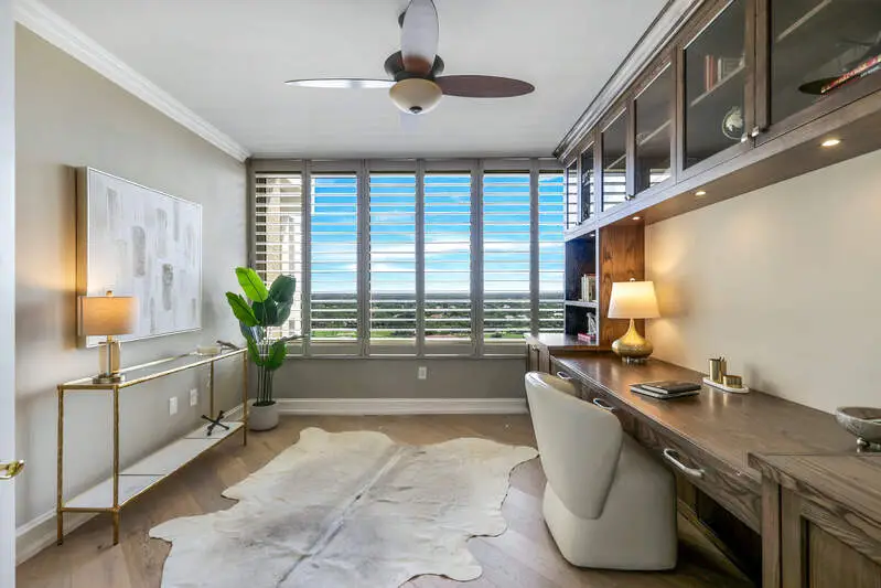 Introducing this exquisite beach access oasis in the heart of Naples, where luxury meets coastal living. This 16th floor St Raphael unit in Pelican Bay features 3 bedrooms and 3 full bathrooms with gorgeous 5" wide plank wood flooring throughout, tray in tray ceilings, plantation shutters, custom automatic shades, updated lighting, with gorgeous views from every room. The kitchen has been updated with granite counter tops with ogee edges, Wolf induction cook top and JennAir appliances and has an eat in kitchen area where you can enjoy your morning coffee overlooking the golf course. Each room has had custom organization added as well as additional storage space. A custom built home office was designed for one of the bedrooms. Enjoy peace of mind with electric hurricane shutters on your lanai space. Revel in the breathtaking views of the Gulf of Mexico from your balcony, while relishing the convenience of nearby irresistible amenities such as two Gulf-front restaurants, near by tram access, tennis facilities, a 27-hole golf course, boardwalks, Fitness & Wellness center as well as on-site amenities including a pool & hot tub, fitness room, tennis courts, library& club room and conceirge services. You are only a short distance to Waterside Shoppes with luxury shopping is offered and the choice of multiple dining options as well Baker Museum - Artis Naples where you can enjoy numerous events and exhibits. This unit also features 2 deeded garage parking spaces as well as 2 additional joined storage spaces on garage level and 1 add'l storage closet on 16th floor. You will love living in this premier community centrally located in Naples.