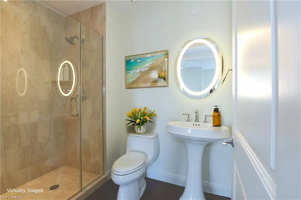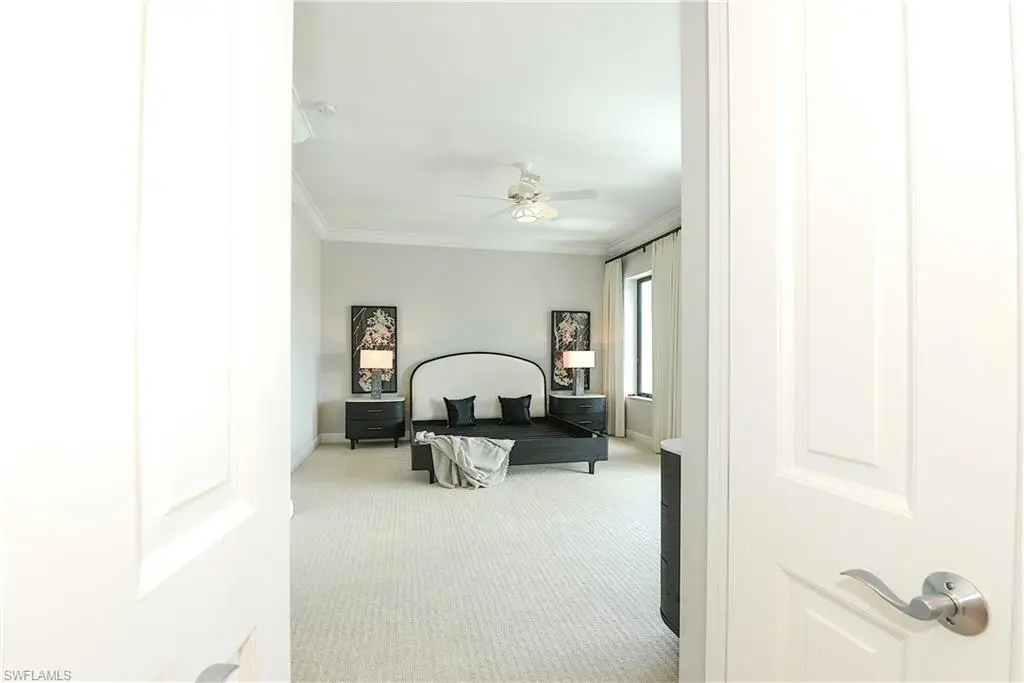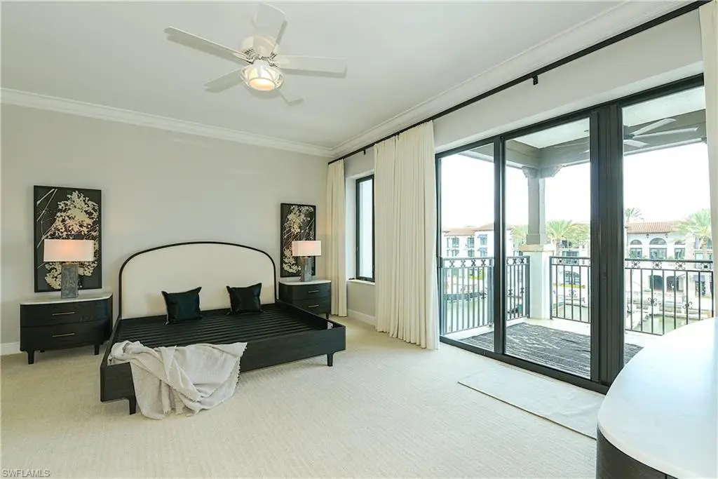 Indulge in the pinnacle of luxury waterfront living at Naples Bay Resort, where this exquisite 3-bedroom plus den, 4-bath condo offers an unparalleled blend of sophistication, comfort, and exclusivity. Perfectly positioned within one of Naples' most sought-after gated communities, this residence boasts breathtaking marina and water views from five private balconies, capturing the essence of resort-style living. Step inside to find an expansive, light-filled interior, meticulously designed with refined finishes and upscale details throughout. The open-concept living and dining areas are framed by floor-to-ceiling windows, allowing natural light to cascade across elegant flooring and custom millwork. The gourmet kitchen is a chef's dream, complete with top-of-the-line appliances, custom cabinetry, and sleek quartz countertops, making it both a functional workspace and a stylish focal point for entertaining. A private elevator leads to the luxurious primary suite, a serene retreat offering a spa-like en-suite bath, oversized walk-in closets, and a private balcony with tranquil water views - perfect for enjoying morning coffee or an evening sunset. The split floor plan ensures privacy for guests, with generously sized secondary bedrooms, each featuring en-suite baths and private balconies. The den provides an ideal space for a home office, media room, or exercise room, offering flexibility to suit your lifestyle. Beyond the impeccable interiors, this residence includes a spacious two-car garage, a rarity in resort living, and is offered partially furnished, allowing for an effortless transition into a luxury lifestyle. Ownership includes prestigious membership to the Naples Bay Club, providing access to a private members' club with world-class amenities and multiple dining options offering exquisite waterfront cuisine. Enjoy the state-of-the-art tennis facility with an on-site pro and Har-Tru tennis courts, five resort-style pools and a lazy river, and on-site boat rentals with direct access to the Gulf of Mexico. All of this is set just moments from Fifth Avenue South's premier shopping, fine dining, and entertainment, as well as Naples' stunning white-sand beaches. Offering the perfect balance of luxury, privacy, and breathtaking views, this rare waterfront retreat is an opportunity not to be missed.
