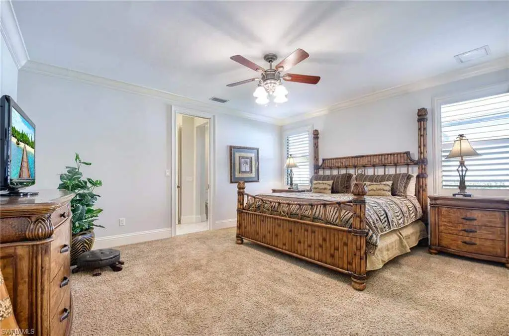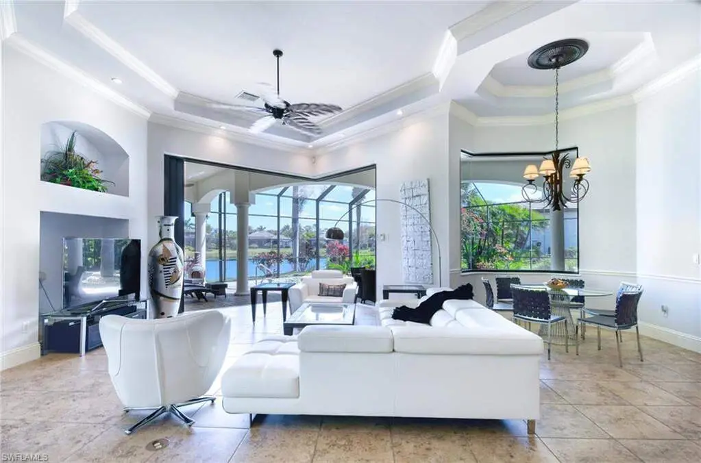 This exquisite estate in Da Vinci Estates at Olde Cypress boasts a new roof and gutters, a fabulous and rare FIVE CAR garage (set up as 3 and 2 on the courtyard), and ample space for family enjoyment. This home is a creation for making lasting family memories for multi-generations. Recently painted, the home features an impressive second floor with a movie theater, billiard room with bar, and half bath. The expansive primary bedroom includes sliders to the lanai, an oversized walk-in closet, and a sitting room, gym or second office space. With newly installed HVACs in 2025, stunning lake views and water feature from multiple rooms, and lightly lived-in, this property is perfect for both extended family gatherings and a serene primary residence for a family living in a vibrant community. The pool has a grotto spa with a cascading waterfall sure to delight the children. The cabana has resplendent views of the lake and an entrance to the lanai, full bath and mini bar. Guests will feel the expansiveness of the guest accommodations measuring 16'9" x 14'7" and 15'4"" x 14'0". The Cabana bedroom measures 15'1" x 15'3". The Den could be used as a fifth bedroom (13'2" x 27'7") with an ample closet. The Primary bedroom encompass the entire east wing of the home and measures 16'7" x 27' with a closet 14'2" x 10'7". The tub room is oversized and the shower room is a separate room. Two commode rooms in the primary bath suite. The oversized laundry room is 14'5 x 10'7". As the discerning buyer would expect, the home has extensive millwork and solid wood doors throughout. For those appreciating privacy, this home enjoys 140 feet of frontage at the street. DaVinci Estates has an additional gated entrance. The Club is a well respected PB Dye course that many golfers that do not reside in the community join for its challenge. It has had consistent renovations with the fastest drying greens in the county. Social membership is required for residents, with no initiation fees. Tennis, pickleball, bocci and fitness center with club house dining is all included in the social membership. (no minimums!) ONLY 550 homes in this community and all are single family homes makes for a neighborhood feel that is very social and FUN. Check out The Club at Olde Cypress Facebook page to see all of the social events. NEW expansion plans UNDERWAY for the clubhouse, With NO Assessments. NO CDD. Note where the guard gate is here. It is on the other side of the clubhouse. During reciprocal season, many golf communities have guests in and out of the residential streets--not the case here where only registered guests enter the residential streets of Olde Cypress. Logan's Landing and Founder's Square are close, Mercato is is a short drive. Peace of mind in living east of the gulf, but close enough to enjoy all that it offers, giving you the best of both worlds. Be sure to watch the DRONE VIDEO link of the interior and outside.