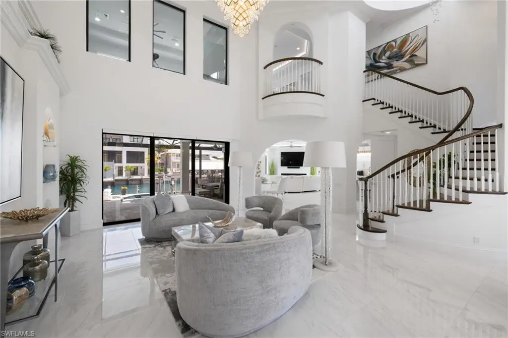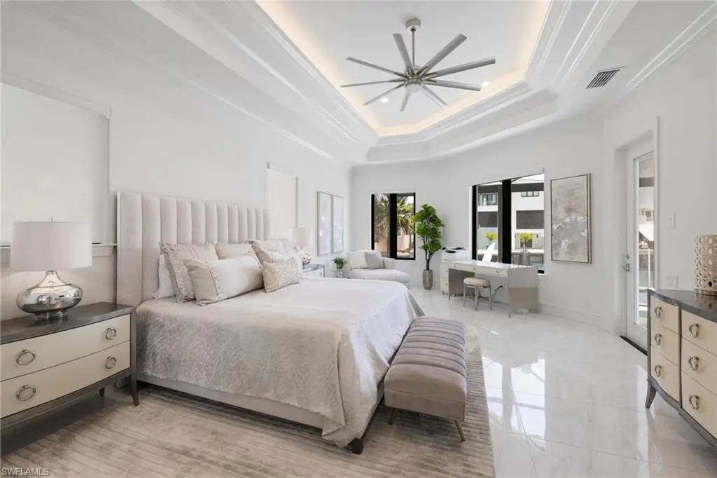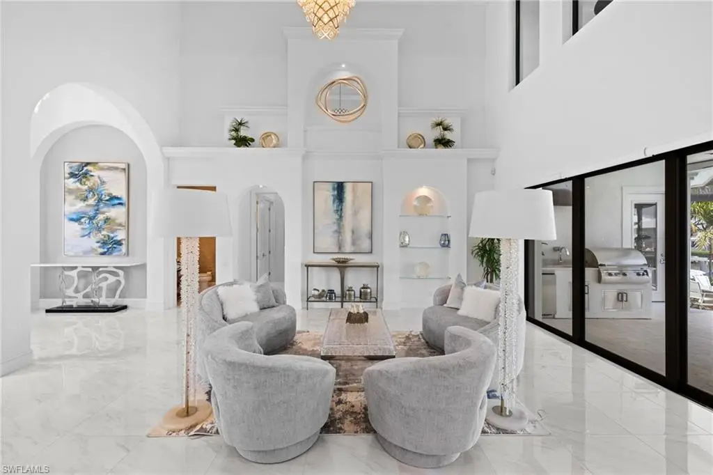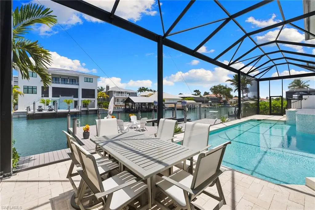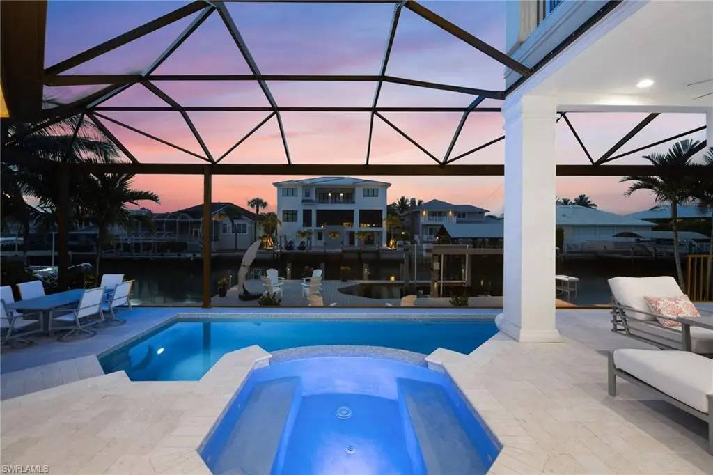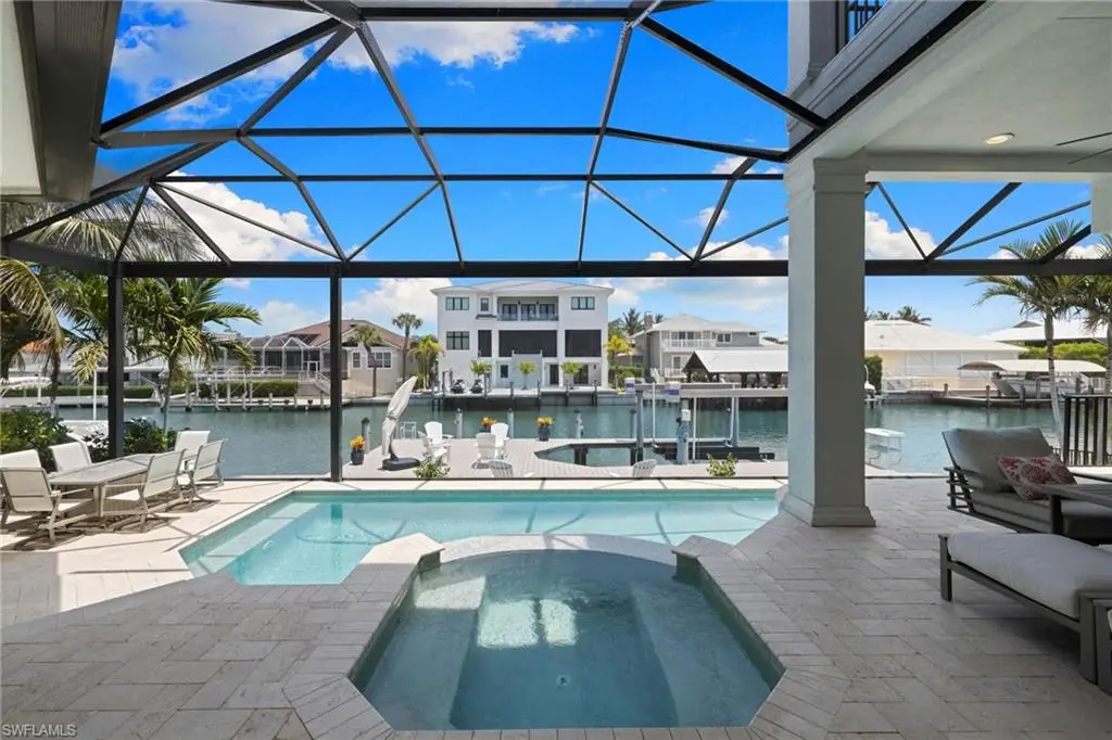 Experience the epitome of waterfront living in this exquisite custom-built home located in the prestigious Conners community of North Naples. This modern masterpiece combines unparalleled elegance with contemporary design elements and high-end finishes, creating a harmonious blend of comfort and style. The open-concept layout allows for seamless integration between indoor and outdoor spaces, making it perfect for entertaining. The expansive kitchen features custom countertops and flows effortlessly into the living areas. With four generously sized en-suite bedrooms, there is ample space for guests and family alike. The upper level boasts additional flex space, ideal for a home office or gym, catering to your lifestyle needs. Nestled along a canal with direct access to the Gulf of Mexico, this property includes a private boat dock and lift, making it a haven for boating and water enthusiasts. Enjoy sunny Florida days lounging by the sparkling saltwater pool, complete with an outdoor kitchen - perfect for al fresco dining with family and friends. Rest assured, the living area remained completely dry during recent storms, providing peace of mind in this beautiful location. This exceptional property presents a rare opportunity to claim your own slice of paradise in the vibrant community of Naples, Florida.