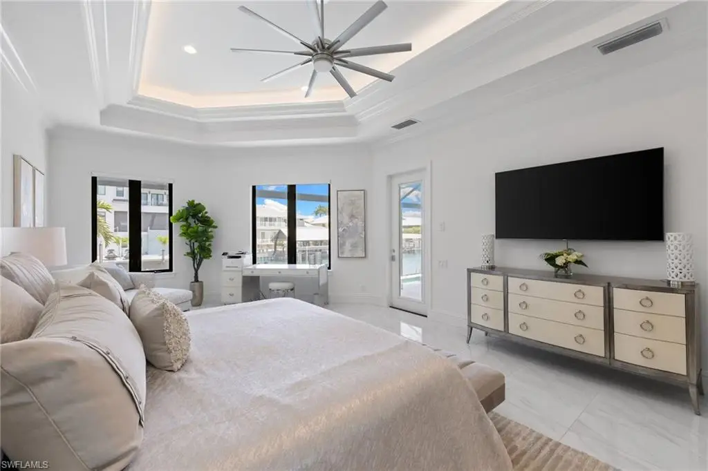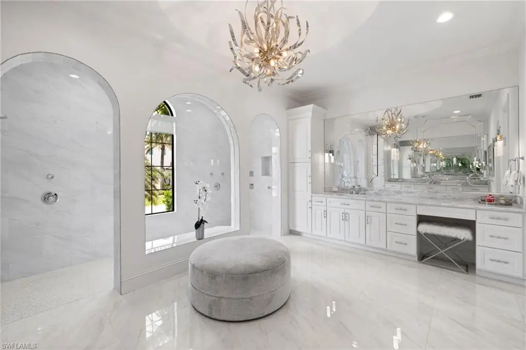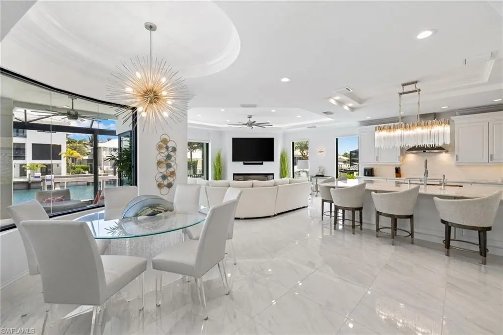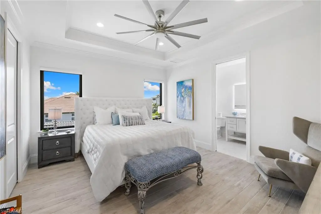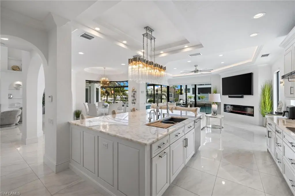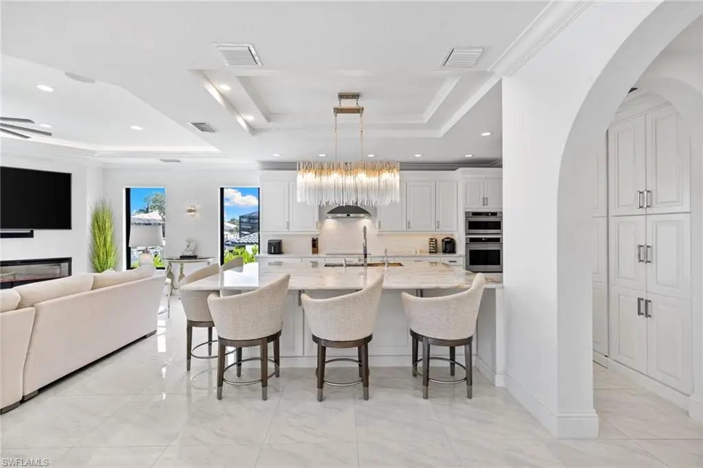 Experience the epitome of waterfront living in this exquisite custom-built home located in the prestigious Conners community of North Naples. This modern masterpiece combines unparalleled elegance with contemporary design elements and high-end finishes, creating a harmonious blend of comfort and style. The open-concept layout allows for seamless integration between indoor and outdoor spaces, making it perfect for entertaining. The expansive kitchen features custom countertops and flows effortlessly into the living areas. With four generously sized en-suite bedrooms, there is ample space for guests and family alike. The upper level boasts additional flex space, ideal for a home office or gym, catering to your lifestyle needs. Nestled along a canal with direct access to the Gulf of Mexico, this property includes a private boat dock and lift, making it a haven for boating and water enthusiasts. Enjoy sunny Florida days lounging by the sparkling saltwater pool, complete with an outdoor kitchen - perfect for al fresco dining with family and friends. Rest assured, the living area remained completely dry during recent storms, providing peace of mind in this beautiful location. This exceptional property presents a rare opportunity to claim your own slice of paradise in the vibrant community of Naples, Florida.