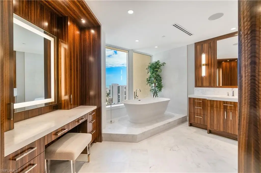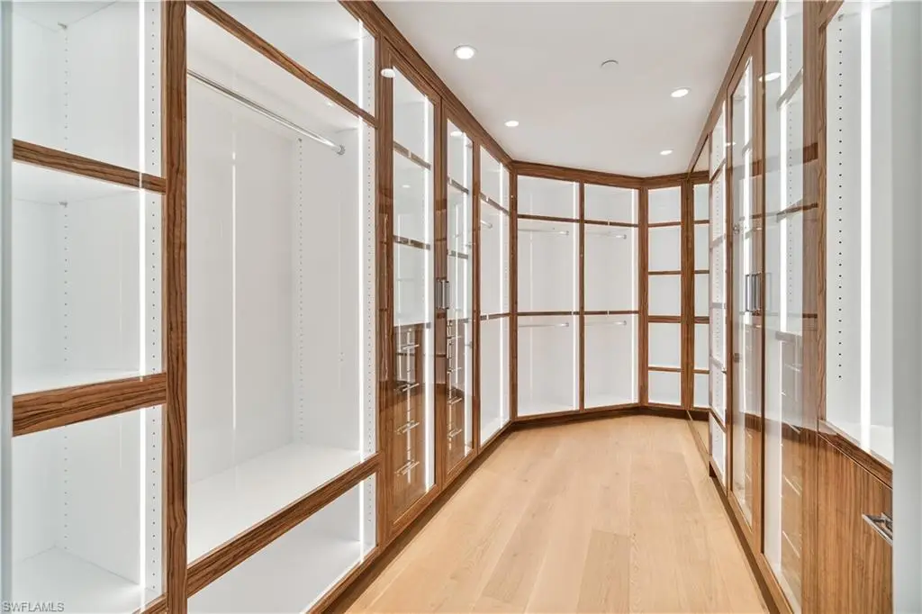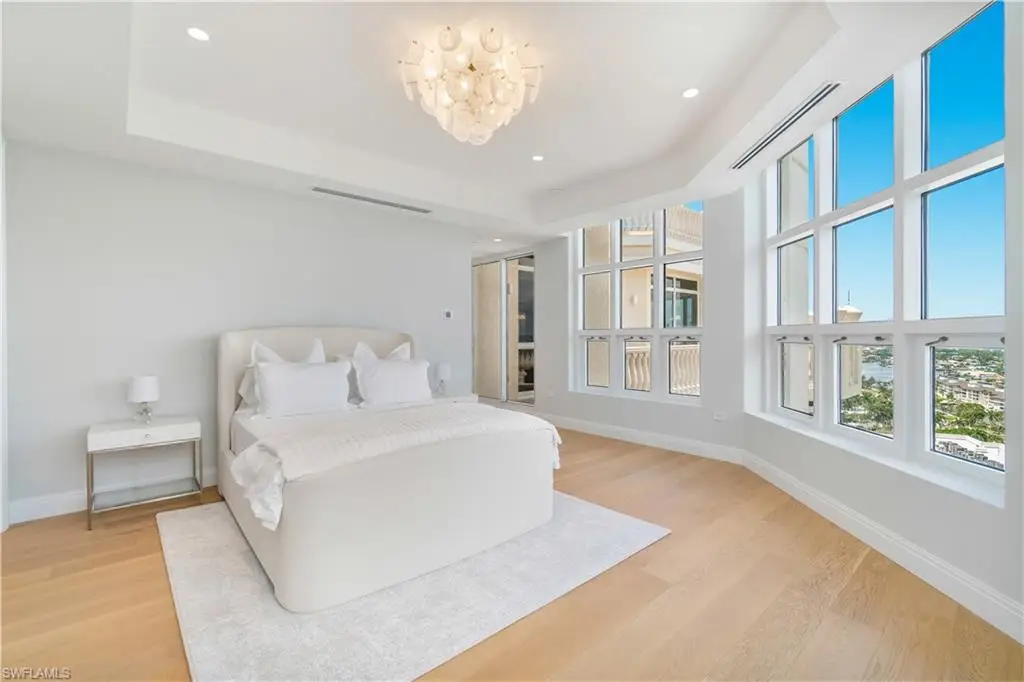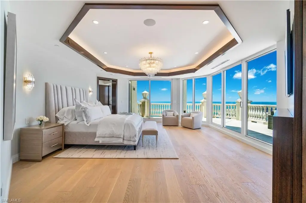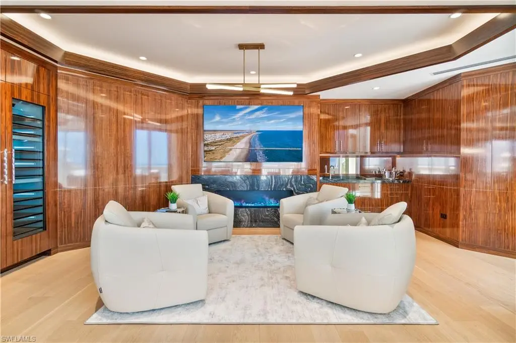An extraordinary offering in the heart of Park Shore, Penthouse 14 at The Brittany presents a rare opportunity to own a one-of-a-kind residence with 4 bedrooms + den, 6,435 square feet of interior living space, and 1,950 square feet of wraparound balcony showcasing panoramic views of the Gulf, Venetian Bay, and Naples skyline. Thoughtfully curated by UpVail and Architectural Wood Expressions with a level of craftsmanship seldom seen, the home features hand-selected European select-grade White Oak flooring, dry-laid quartzite and marble surfaces, grain-matched custom European millwork, and Level 5 finishes throughout. Built with 5/8-inch drywall and mineral wool insulation for enhanced structural integrity, sound attenuation, and climate control, the residence also offers invisible audio speakers, a Control4 smart system, ultra-clear shower enclosures, Samuel Heath plumbing fixtures, Emtek hardware, and a full suite of Miele appliances. Distinctive highlights include a water vapor fireplace in the clubroom, electric fireplace in the primary suite, and countertops custom-fabricated in Chicago with precision installation. Additional features include private key-secure elevator entry, three deeded parking spaces, a finished deeded cabana, and an air-conditioned storage room at the garage level. The residence also enjoys exclusive rooftop accessùa rare and valuable amenity offering a blank canvas for a future floating deck, spa, sun lounge, or pet area with synthetic turf. Offered fully furnished with a refined, designer-curated furnishings package, this turnkey residence delivers an elevated lifestyle in every detail. Residents of The Brittany enjoy resort-style beachfront amenities including a pool and spa, tennis courts, fitness center, guest suites, 24-hour security, and immediate proximity to Venetian Village. Boat slip leasing or purchase at the Venetian Yacht Club is also available, completing a truly exceptional coastal living experience.