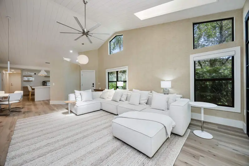 This centrally located, fabulous 3+den residence has been incredibly transformed from floor to ceiling with a stunning selection of finishes and materials. Blending style, practicality, and a touch of playful creativity, this home showcases thoughtful design choices throughout. All major appliances, along with the water heater and AC, have been replaced. New impact windows and doors create a protective core. Other desirable benefits include dramatic floor-to-near-ceiling windows and glass doors, which provide a full view of the backyard and maximize the natural light that floods into the living space. These are pre-wired for future automatic window and door coverings if you choose. Skylights also provide an abundance of natural light throughout the property. Lastly, the property is located in X Flood Zone, providing an added comfort against unwanted exposure. The quality of these improvements was initially intended for the current owner. The new owner will reap the rewards of this purposefully curated home, which anticipates the expectations of the world's most selective clientele.