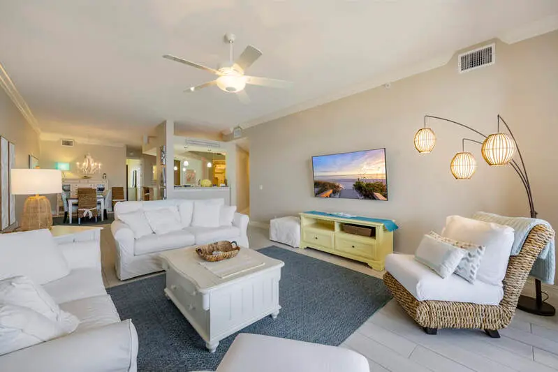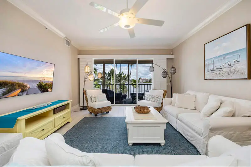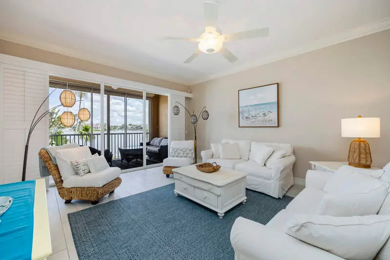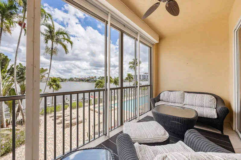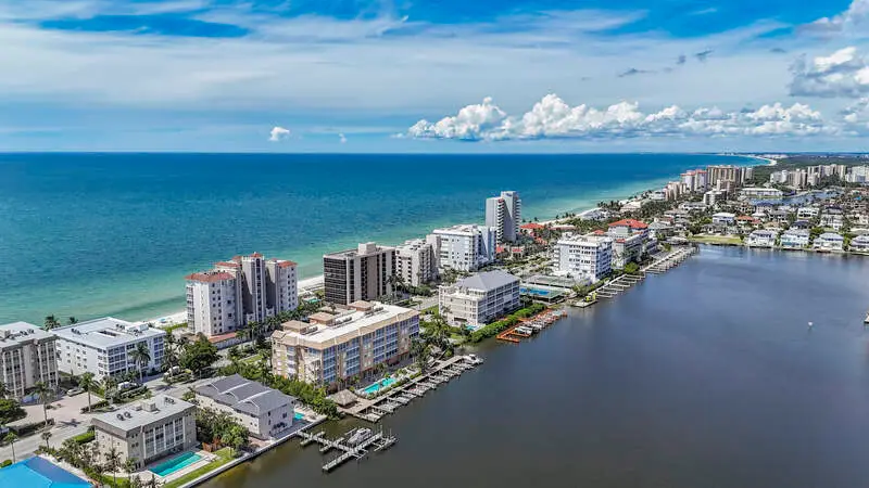Introducing a Fabulous Naples waterfront Cottage! Bask in the best of both worlds with both Gulf of America and expansive Bay views. Here's the arrangement: The grand living area and spacious primary bedroom capture glorious Bay views overlooking three intersecting canals, offering access to the east lanai. Other features include an enviable walk-in closet, a stylish remodeled bath with two vanities, and a spacious shower. If you can imagine, there's even a waterview from the shower! Lucky guests will enjoy one of two full en-suite bedrooms featuring remodeled baths and access to the west-facing Gulf side lanai, where they can catch the incredible colors of spectacular sunsets in the afternoon and enjoy peek-a-boo views of the Gulf. Centrally located, you'll find a remodeled open kitchen with a roomy breakfast bar to feed hungry guests. Prefer a formal affair? Upgrade your venue to a formal dining area, large enough to comfortably seat eight or more guests. A private den is tucked discreetly down the hallway from the primary bedroom, so taking care of business can still maintain a sense of privacy. Let's not forget about this smart kitchen, featuring upgraded stainless steel appliances, new flooring, stylish countertops, and ample space to store the latest gadgets. Other notable features include plantation shutters and electric storm shutters for peace of mind. Community amenities include a sparkling pool, two tiki huts, under-building parking, and extra storage for beach gear-creating a true waterfront paradise. With public beach access just across the street, LaPlaya steps away, and the Ritz-Carlton and Mercato nearby, this home blends luxury and convenience for the ultimate Naples lifestyle.