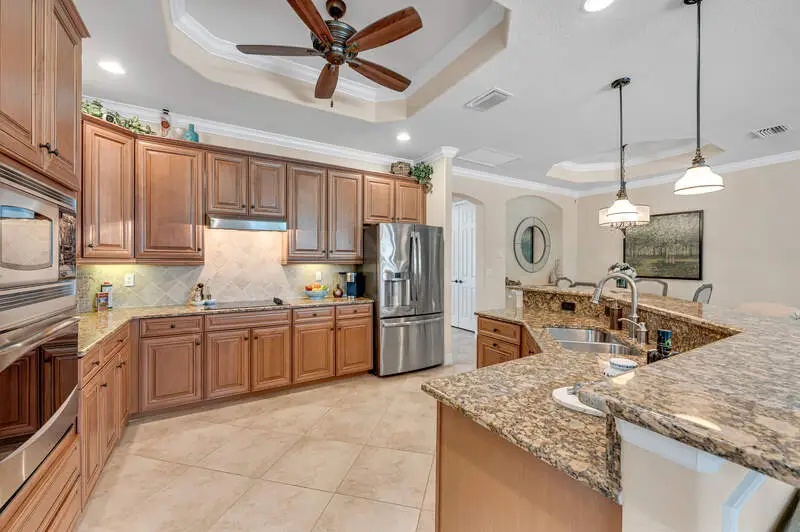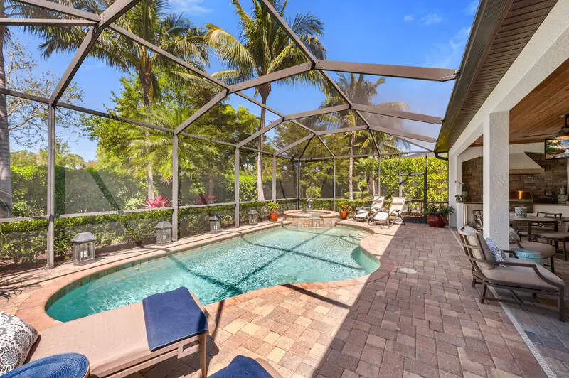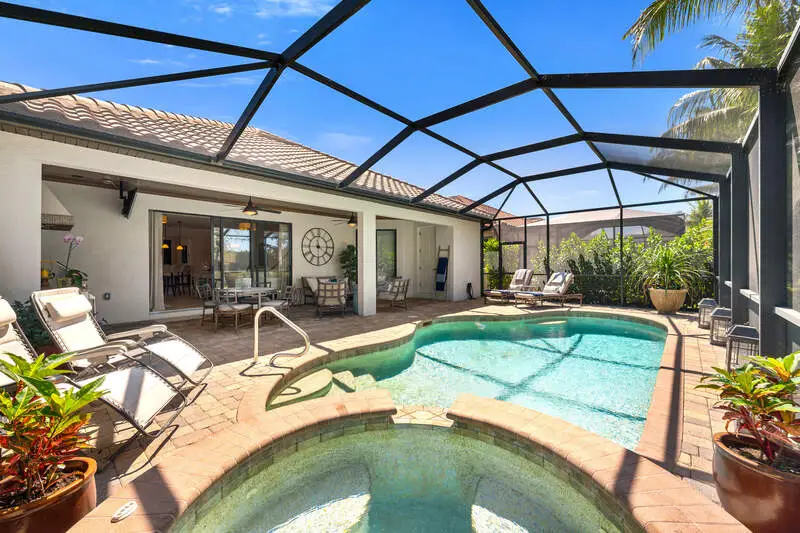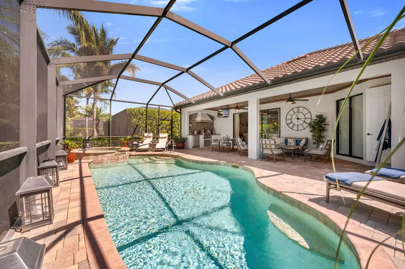 Fresh Price Drop! Lowest Priced Available Single Family Home with Golf Membership. Welcome to this exceptional Victoria model home built in 2014, located in the prestigious TPC Treviso Bay with DEEDED GOLF MEMBERSHIP & very close proximity to the Treviso Bay Club. This stunning 1,901 sq/ft residence features 2 bedrooms + Den and 2.5 bathrooms, offering both comfort and flexibility. With Western Exposure, you'll enjoy breathtaking sunsets from your luxurious outdoor retreat-perfect for entertaining. Inside, you'll find tray ceilings with crown molding throughout, granite countertops, stainless steel appliances, a wine fridge, and custom built-in cabinets in the great room and office area. The master bath features dual sinks, a separate tub, and a large walk-in shower. The expansive pool deck with a spa, outdoor kitchen with pool bath, and large palm landscaping package create an ideal setting for relaxation. Recent upgrades include a new AC and exterior paint in 2024. The garage is equipped with a mini split for added air conditioning, a built-in storage wall system, and epoxy-coated floors. Residents of Treviso Bay enjoy a wealth of amenities, including a 64,000 sq/ft luxurious main clubhouse, Villa Rilassare, resort-style lagoons, lap pools, a tennis center with pro shop, a fitness center, an aerobics and Pilates studio, and bocce ball courts. This home truly offers the perfect blend of luxury and comfort.