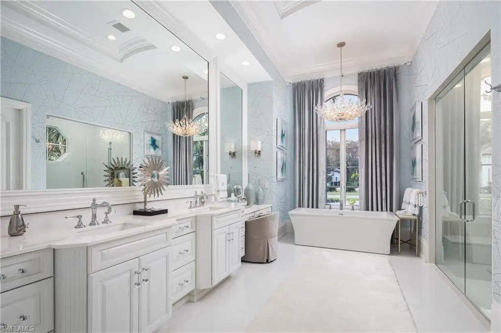 IMMEDIATE GOLF MEMBERSHIP AVAILABLE WITH THIS SALE (SKIP THE WAITLIST)! BUYER SAVES $180K ON GOLF INITIATION FEE BY TRANSFERRING SELLER'S GOLF MEMBERSHIP! Fully renovated, state-of-the-art estate situated in the highly sought-after Quail West community in Naples. This masterpiece sits on a nearly 1-acre lot with beautiful golf course views, a park-like setting & one of SWFL's finest outdoor entertainment areas with resort-style pool/spa, water features, state-of-the-art outdoor kitchen/bar & super screen picture window enclosure. Designed for ultimate enjoyment, the outdoor kitchen and bar offer seating for nine, featuring exquisite Taj Mahal granite, a grill, cooktop, burners, dishwasher, fridge, and a cocktail station. Inside, no detail has been overlooked, with European oak hardwood floors, & brand newly redesigned high-end furnishings & decor, custom designer wall coverings throughout, impressive distinctive light fixtures & luxurious custom draperies. Boasting 4,972 sq ft of living space, this home offers 4 spacious bedrooms, a spacious bar room with a 650 bottle wine wall (could also be converted back to a den), stunning formal dining room, a large laundry room with plenty of storage, and two 2.5-car garages with a motorized gate. Immaculately maintained, the property features hurricane impact windows, new hot water heaters, 3 new HVAC units (2022), 2 generators, a water filtration system, smart home automation with Lutron lighting, and a Sonos sound system. The chef's kitchen is a true culinary masterpiece, with pristine white cabinetry, high-end granite countertops, an oversized island, expansive walk-in pantry, and top-tier appliances, including a Thermador double oven, dual Viking dishwashers, Sub-Zero refrigerator drawers, Dacor microwave, and a Wolf gas cooktop with a hood. The primary suite serves as the perfect retreat, offering stunning views of the pool area and golf course. Its spa-like bathroom features dual vanities, a makeup vanity, a standalone soaking tub, and a luxurious frameless glass shower with a bench. Quail West is known for its world-class amenities, including two championship golf courses, a newly renovated 100,000 sq ft clubhouse, a Racquet Sports complex, an indoor lagoon-style Junior Olympic pool, a variety of dining options, a state-of-the-art fitness center, and a full-service salon and spa with a sauna. Just minutes from Barefoot Beach, Mercato, Waterside Shops, and Naples' iconic 5th Avenue, this prestigious community offers easy access to RSW and Naples airports.