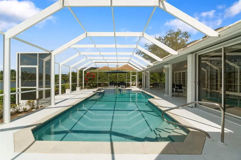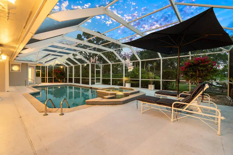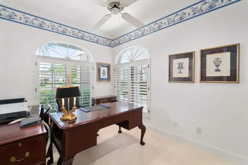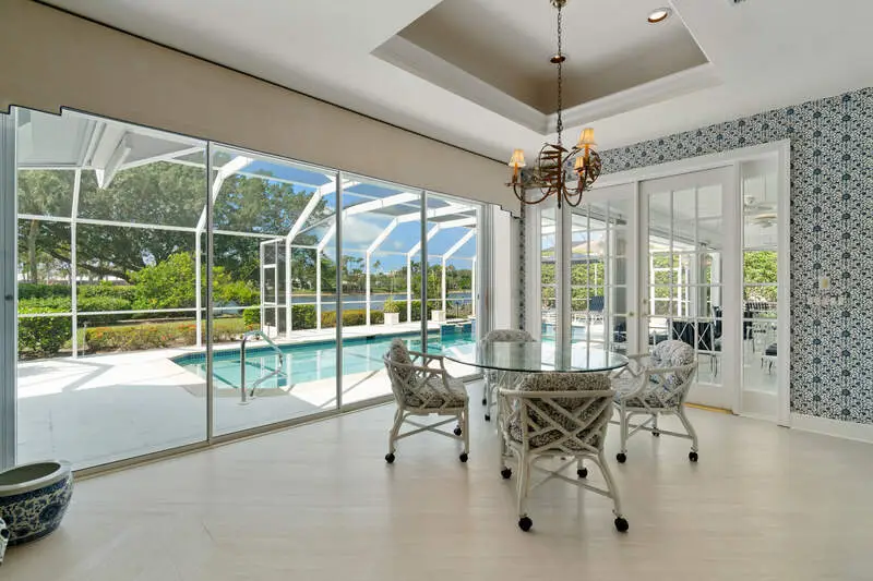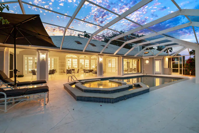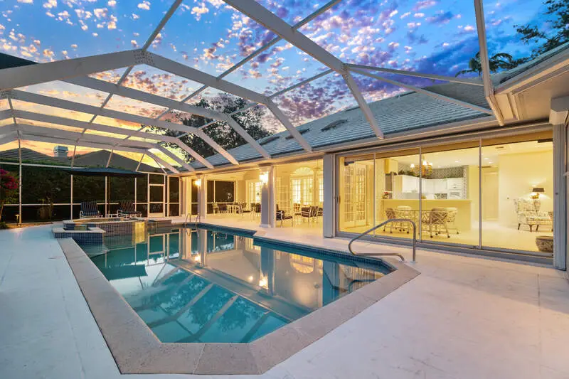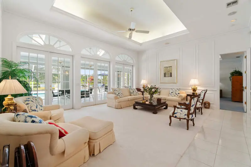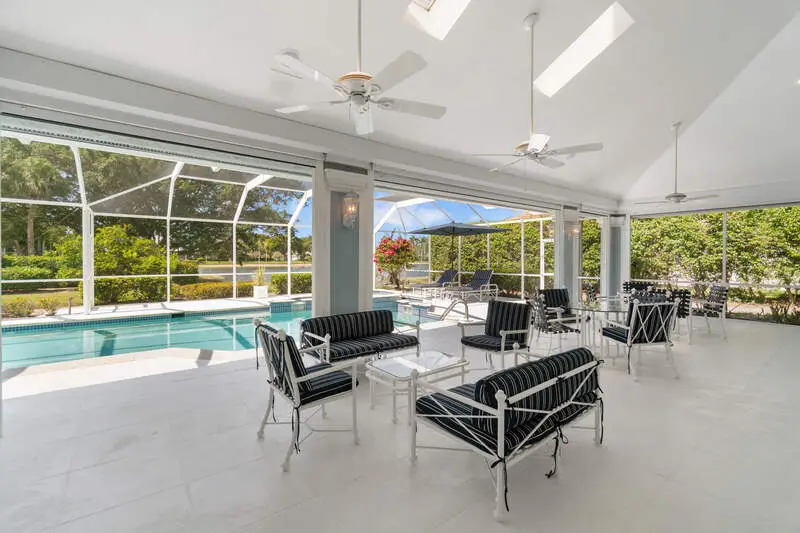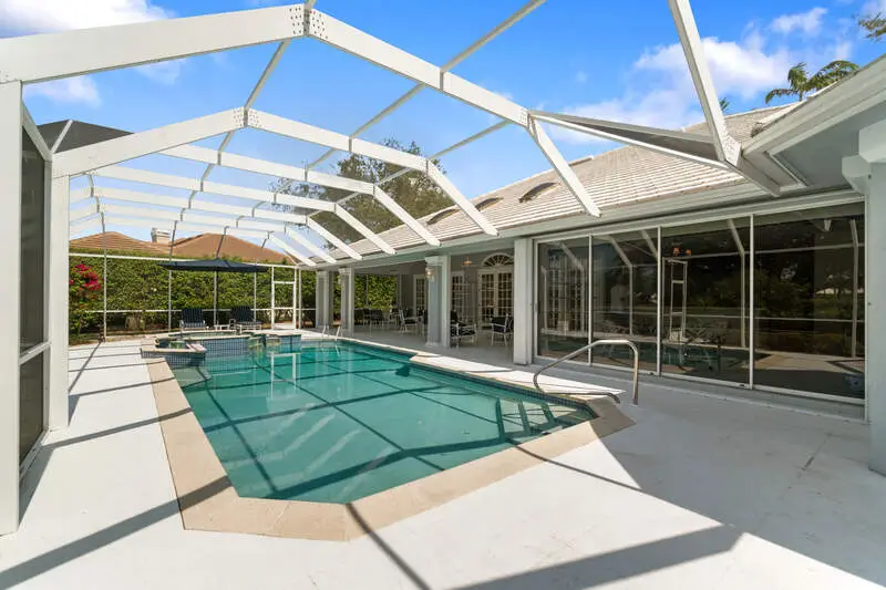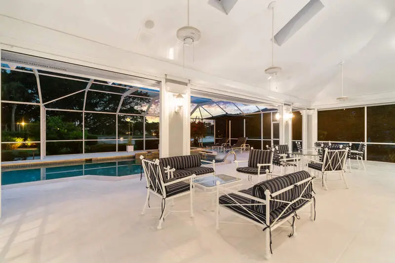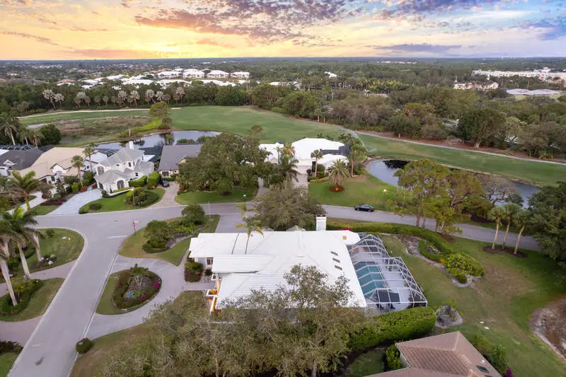 Exceptional estate situated on a rare corner lot with breathtaking lake views in the prestigious Audubon Golf & Country Club in North Naples. Offers highly sought-after SOUTHERN exposure for breathtaking sunsets and optimal sun over the pool. Originally built as one of Audubon's model homes, this beautifully designed home offers 3,245 square feet under air with 4 spacious bedrooms, 4 full bathrooms, a 3-car garage, soaring high tray ceilings, and beautiful French doors, flooding the interior with natural light. Additional highlights include a 2014 roof, hurricane shutters, new hot water heater (2021), whole-house generator (2022), 500-gallon propane tank, and dual driveways for added convenience. The open-concept layout seamlessly blends indoor and outdoor living, with the lanai offering a serene retreat with a pool, spa, ample lounging space, and stunning lake views -perfect for relaxing or entertaining. Inside, you'll find a spacious kitchen boasting white cabinetry, white countertops, and plenty of storage. The primary suite features private French doors to the lanai/pool deck, a large walk-in closet with custom built-ins, and an ensuite bathroom with dual vanities, a separate soaking tub, and spacious shower. Audubon's prime location is just 5 minutes from Mercato and world-class beaches, and the community offers a gated/guarded entrance, an 18-hole championship golf course, tennis, pickleball, a Bayside boardwalk, and a newly renovated clubhouse with dining and a second beautiful poolside club and cafe.