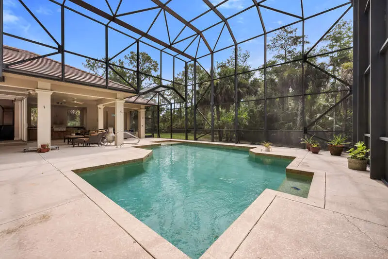 Tucked behind private gates on a rare 5-acre parcel, this peaceful estate offers the space and freedom to enjoy everyday living with room to breathe. Designed for comfort and connection, the home opens up to a large screened lanai with an outdoor kitchen, pool, and plenty of spots to relax or entertain-whether you're hosting friends for dinner or just enjoying the quiet sounds of nature. Inside, the layout is thoughtful and spacious. Each guest room includes its own private bath and walk-in closet, giving everyone personal space and comfort. The game room, complete with a wet bar, adds a casual space for gathering or watching the game. Recent upgrades include impact glass on all upstairs windows and doors, a hurricane-safe room on the lanai, new water heater (Nov 2023), newer pool heater (2021), dual 5-ton HVAC units with regular service, Wi-Fi enabled gate opener (2021), and an outdoor fire suppression system. This is a property that feels tucked away, yet still practical and ready for real life. Whether you're looking for privacy, room for hobbies, or a place to welcome family and friends, this home offers a rare opportunity to own a slice of quiet Florida living.