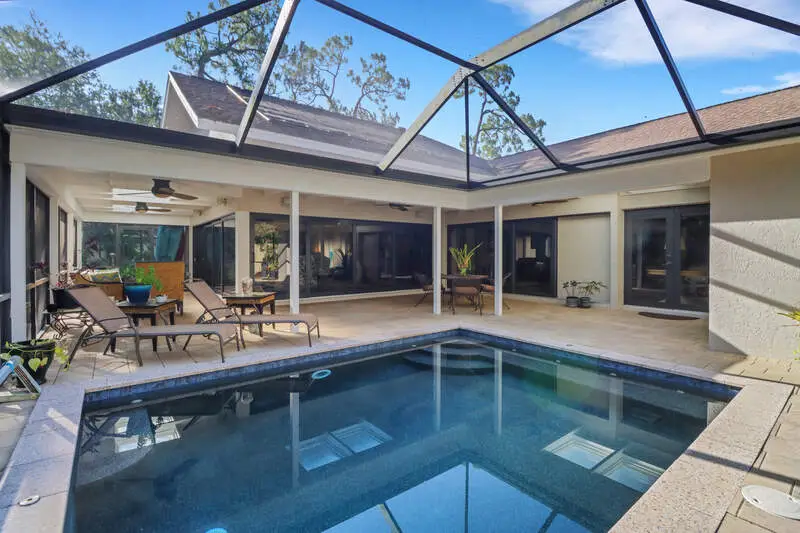 Designed for Florida Living by Local Architect David Poorman, this outstanding Home is Timeless! With an Outstanding Open Floor Plan, Generously Sized Rooms, Abundance of Windows, Clerestory Windows, Sliding Glass Doors, French Doors and Skylights allows Natural Light to fill the Home. Teragan Bamboo Flooring, 5-inch Baseboards, Solid Core Interior Doors. ALL EXTERIOR, DOORS SLIDING GLASS DOORS, GARAGE DOOR, FRONT DOOR, SIDE DOOR TO THE GARAGE & ALL WINDOWS INCLUDING THE CELRESTORY WINDOWS ARE HURRICANE IMPACT, Saltwater Pool with Resistance Swimming Spa Jets, Travertine Decking and Solar Heating. These are just a few of quality upgrades throughout the home. The floor plan flows around the amazing great room with its soaring twelve and half foot flat ceilings, lined on two sides by stack back walls of sliding glass doors and clerestory windows, opening up to a wraparound screened lanai overlooking the saltwater pool, lush private backyard and preserve area. Oversized kitchen opens to great room features custom wood cabinets with built-ins, 13-foot island with bar sink, quartz countertops, custom tile backsplash wonderful lighting, stainless steel appliances. Generous Sized Primary Bedroom Suite is very serene with soaring ceilings, French doors that open on to lanai. Spa Inspired Primary Bath Suite is filled with natural light from French Doors & Sky Lights, wood look tile flooring, custom lighting, mirrors, wood cabinets with travertine vanities, bidet, soaking tub with jets, walk in shower frameless enclosure, outside shower with privacy wall. Split Floor Plan allows for privacy of all residents the home has two other bedrooms along with good-sized guest bath. Home also has a wonderful home office which has two work areas with custom cabinetry. Not to be forgotten an oversized two car garage, with storage space. NEW TIMBERLINE SHINGLE ROOF HAS JUST BEEN COMPLETED!!! NEW SOLAR POOL HEATING PANELS HAVE BEEN INSTALLED!!! Located in Kings Lake in the sought-after Woodland's neighborhood of 45 custom homes; they enjoy their own private heated pool/clubhouse! Kings Lake is low density community with and abundance of green space, walking and jogging path, nature trail, tennis & pickle ball court. Low Fees, Pet Friendly. Minutes to Olde Naples & Marco Island for the Beaches Fine Dining, Shopping & Theatre! You will find a wonderful Florida Lifestyle with this home!