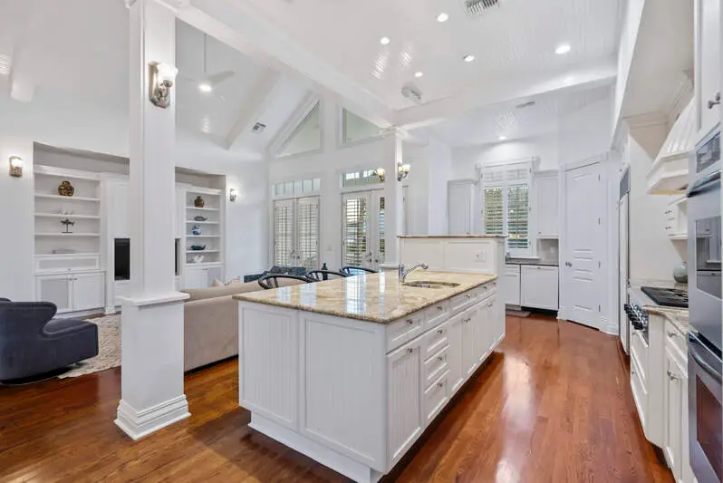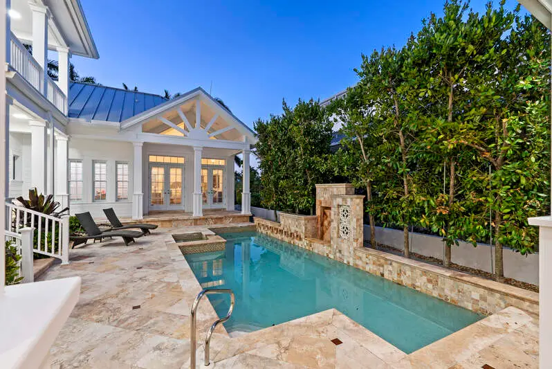 Discover an extraordinary opportunity, a Grand Family Retreat in the Heart of Naples with an unmatched location and irreplaceable corner, oversized lot! Seamlessly blending elegance with the comfort of modern living, this five bedroom plus den residence is a warm and welcoming haven, that exudes both timeless charm and contemporary luxury. From the moment you step into the impressive foyer, you'll sense the home's inviting spirit. Rich wood flooring, a coastal fireplace, and bright natural lighting all set the tone for refined yet relaxed living, perfect for both quiet family evenings and lively gatherings with friends. At the heart of the home lies an elegant family room and kitchen with its vaulted ceiling, abundance of cabinetry and integrated appliances with gas range, making family breakfasts or weekend entertaining a delight. This airy oasis invites you to linger over meals while enjoying soothing views of the private outdoor swimming pool surrounded by lush greenery. Meticulously maintained throughout, and a brand-new roof, skylights and gutters installed as of the end of 2024 as well as freshly painted. Whether you are looking to relax, work, study or more, a comfortable study/TV room offers a peaceful retreat, ideal for balancing productivity and relaxation. Additional amenities like the front porch to watch the sunsets elevate everyday living and roof top to watch the world go by. Ground floor primary suite features a fully fitted dressing room and large ensuite bathroom, a soothing sanctuary at day's end. A further generous first floor guest suite overlooks an enchanting garden courtyard. Venture upstairs to discover three further double bedrooms, all with ensuite bathrooms and balconies. This remarkable home, steps from the beach and a short walk to Third Street Shops and Dining is an invitation to create cherished memories in a setting that embodies Naples most appealing qualities: heritage, community, and effortless access to both the Gulf Coast and the city. Embrace a lifestyle that celebrates the best of Naples charm and urban sophistication-all in one exceptional family residence.