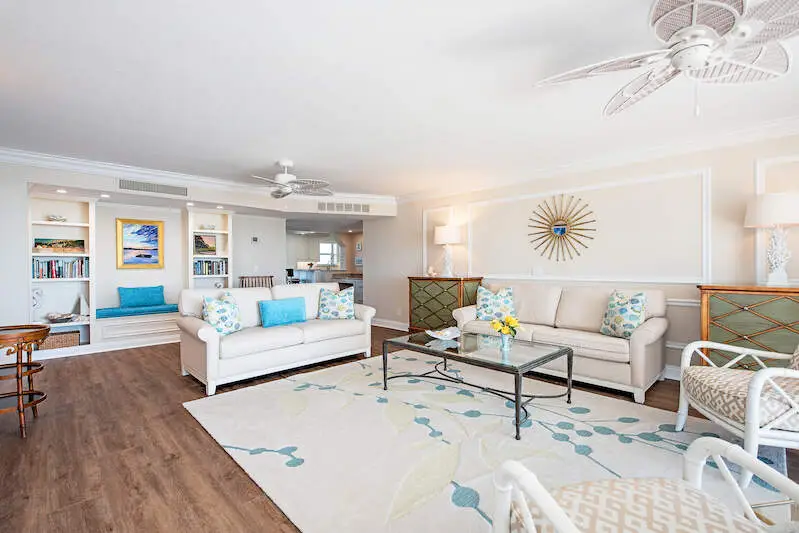 Stunning Gulf-Front Condo with Breathtaking Views and Luxury Features - Exquisite condo offering spectacular views of both sunrises and sunsets from the expansive east and west balconies and floor-to-ceiling windows in the living room and master bedroom. Located directly on the Gulf of Mexico, this spacious 3-bedroom, 3-bath condo provides an idyllic setting with the soothing sound of the waves and regular dolphin sightings. Inside, this beautifully updated home features a brand-new kitchen with high-end finishes and top-of-the-line appliances. All three bathrooms boast luxurious quartzite and marble counters, as well as non-slip floors for safety and comfort. The condo's layout ensures privacy and tranquility, with only three units per floor and just 12 floors in the entire building. Additionally, it comes with one of the highly desirable, secure garage parking spots located right in the building-one of only 8 spaces available. Residents enjoy access to fantastic amenities, including a tennis court, 2 pickleball courts and a heated pool overlooking the beach. This secure, pet-free building offers unmatched beach access, sweeping views, and the convenience of modern luxury living.