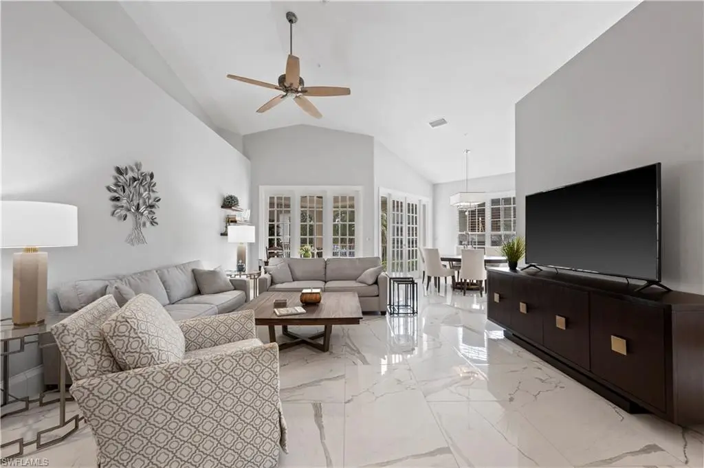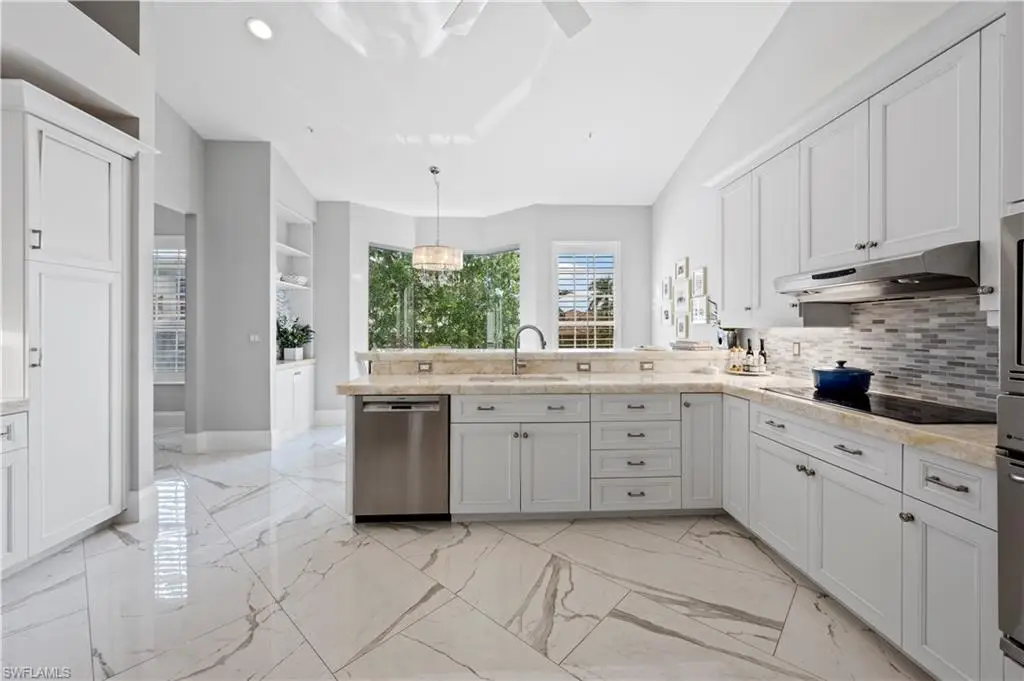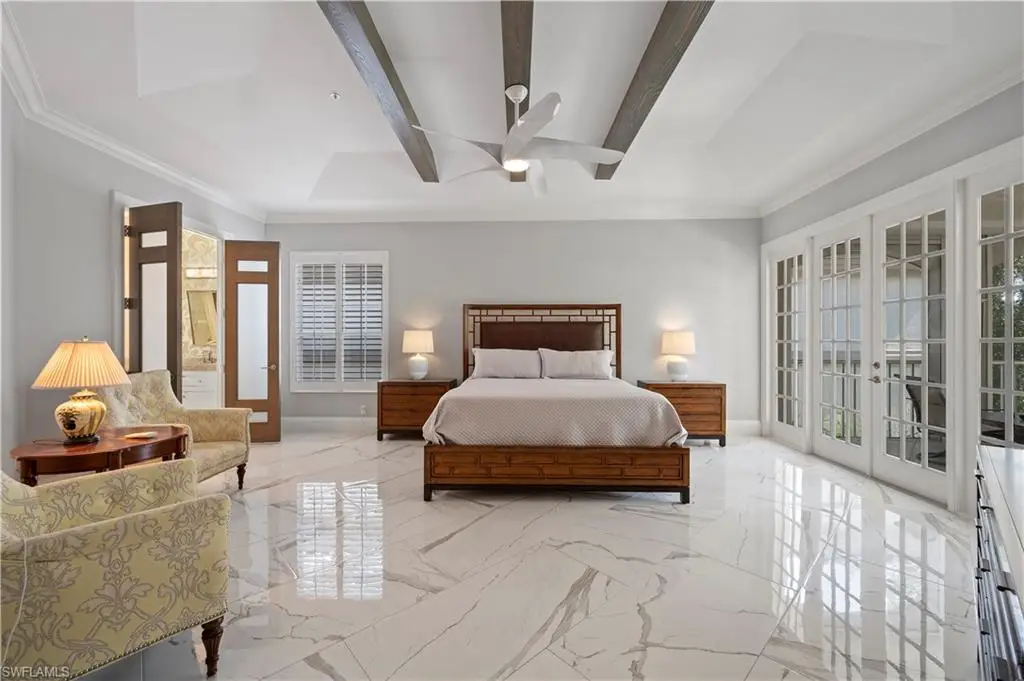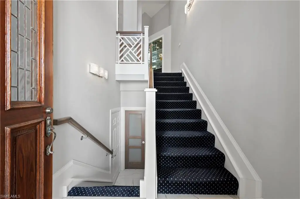 This impeccably modern second-floor retreat in the prestigious Colonnade of Park Shore redefines Naples luxury living. Spanning almost 2,500 square feet, this residence features a soaring double-height entry, a private elevator, a dedicated garage, and a generous screened lanai with automated storm shutters. Every inch exudes refined elegance and meticulous attention to detail. Inside, discover sophisticated touches, with built in bar, polished marble flooring throughout the living areas and primary suite, crisp paint, custom crown moldings, and sleek marble countertops in the gourmet kitchen and spa-inspired bathrooms. Enhanced with bespoke cabinetry, frameless glass showers, a decadent soaking tub in the primary bath, coffered ceilings, and stylish blinds, the home radiates modern luxury. Solid-core 10ft doors with etched glass panels and advanced ambient lighting complete the elevated aesthetic. Enjoy the large outdoor lanai with a spacious patio perfect for your morning coffee or evening beverage. Additional features to this home include an attached garage for your convenience with a private elevator to the main level.The ColonnadeÆs exclusive amenities include a vibrant social lounge with a catering kitchen, grill area, a sparkling pool, and a relaxing spa.The Colannade, a pet-friendly community, also offers a library, and fitness studio. Conveniently located steps to the beautiful shops and varied dining options in Venetian Village, and the sugar sand beaches of the Gulf, this home offers the epitome of upscale Florida living. Private access to Park Shore Beach. Indulge in world-class Naples sunsets, dining, and shopping. Don't miss the opportunity to make this exquisite property your new home.
