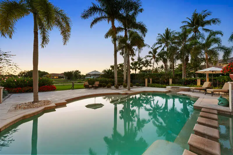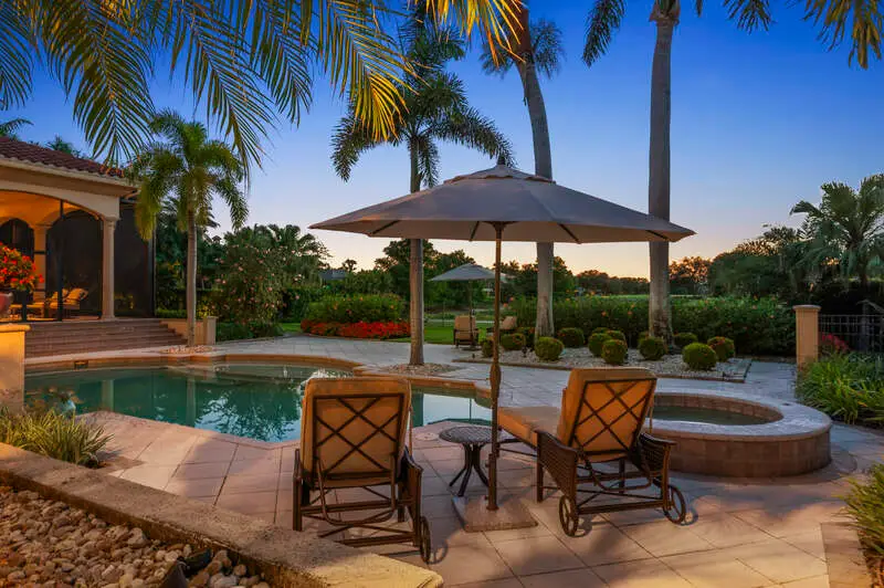 TRANSFERABLE GOLF MEMBERSHIP AVAILABLE! Skip the waitlist and pay only a transfer fee! Ideally situated in the prestigious community of Quail West, this impressive residence offers a thoughtful floor plan complemented by expansive outdoor living spaces including a screened lanai and spectacular golf and sunset views. The luxurious primary suite is uniquely designed with dual en suite bathrooms connected by a shared sitting area creating a tranquil retreat of privacy and comfort. Three additional guest suites offer plenty of space for visitors too. Perfect for entertaining, the open-concept great room flows seamlessly into the chef-inspired kitchen, which features an oversized island, breakfast bar, dual prep sinks, and a walk-in butler's pantry complete with a beverage refrigerator. From terrazzo flooring and tray ceilings to a cozy fireplace and dramatic floor-to-ceiling windows, every detail of this home speaks of refined elegance. The screened lanai includes a covered seating area with an outdoor kitchen, and the custom pool-with integrated spa and sun shelf-is strategically positioned to maximize sun throughout the day. The spacious three-car garage provides ample room for vehicles, a golf cart, and all your Florida lifestyle essentials.
