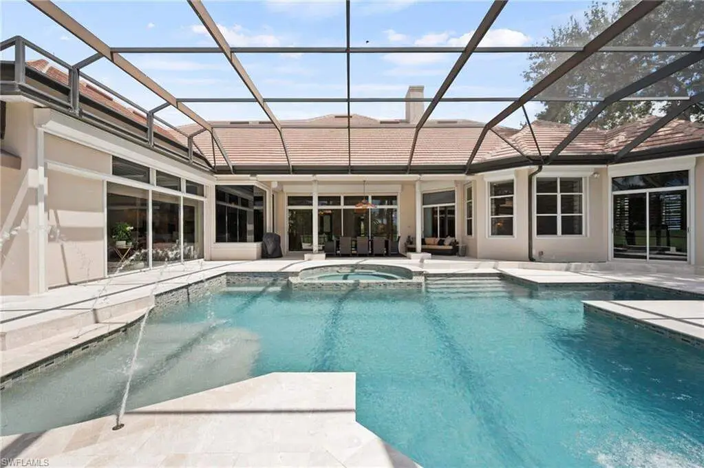 TRANSFERABLE GOLF MEMBERSHIP IMMEDIATELY AVAILABLE with this inviting estate home on almost an acre of land with sunny golf views. Upon entering the grand foyer you are immediately captured by the living room graced with a beautiful fireplace and adjacent formal dining room. The spacious home office offers custom built-ins to display your treasures and the floor plan invites at every turn. You are going to love entertaining in this home with a large kitchen offering stainless steel appliances, a large prep island and separate island with bar stool seating and a butler's pantry for even more storage and prep space. The family room with fireplace and zero corner sliders leading into the lanai is conveniently located just off the kitchen so for optimal entertaining. The three en suite bedrooms are tucked into a wing by themselves for privacy and the luxurious primary suite features a separate flex room surrounded by windows, double walk-in closets and an inviting wet bar/coffee bar. The spa-inspired primary bath features an oversized soaking tub, masterful shower and atmosphere of pure relaxation. The amazing lanai with expansive views of the 9th hole of the lakes course features a pool with waterfall, water slide and integrated spa. There is bathroom access directly from the pool area for maximum convenience. This home also features an enormous casita ready for your choice of uses be it a 5th guest suite, fitness area or media space. It is complete with a full kitchen and bath plus infrared sauna! The home features so many updates and upgrades including a full house generator, surround sound, 1000-gallon LP tank, 4 AC units (3 replaced in 2021), separate golf cart garage off the back of the casita with direct access to the golf course, pocket sliding doors to the lanai, two working chimneys but electric fireplaces now installed, 4 water heaters and gorgeous lighting throughout. Roof new in 2015 is equipped with comprehensive hurricane protection and lightning protection. The last 11 pictures are virtual renderings. Quail West offers an amenity rich lifestyle and is close to sandy gulf beaches, shopping, dining, arts destinations, nature and more.
