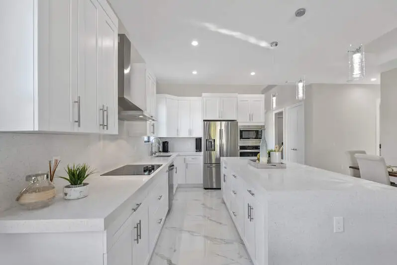 Minutes to Vanderbilt Beach and the Ritz Carlton, welcome to 799 108th Ave N, a stunning home in the highly sought-after Naples Park, ideal for full-time living, a vacation retreat, or a lucrative investment property like Airbnb. This 4-bedroom, 3-bathroom pool home offers a fantastic combination of luxury and convenience. Professionally furnished, this modern gem features an open-concept floor plan with high ceilings, crown molding, and a sleek tile roof. The gourmet kitchen boasts 42" white wood cabinets, a large dine-at island with Quartz countertops, stainless steel appliances, and a hooded range that flows seamlessly into the spacious living area with coffered tray ceilings and large paneled sliding doors. Step outside to enjoy the expansive lanai, complete with an outdoor kitchen and built-in BBQ, perfect for entertaining. The private, fenced-in pool adds a touch of relaxation. The primary suite is a true retreat, with a walk-in shower, freestanding soaking tub, dual vanity, and a generous walk-in closet with an organizing system. Just 5 minutes from Naples' stunning beaches, Mercato shopping and dining, and the newly updated Pavilion shopping center, you can easily drive, walk, or bike to all the best local attractions. Don't miss the opportunity to own this incredible property in one of Naples' most desirable neighborhoods!