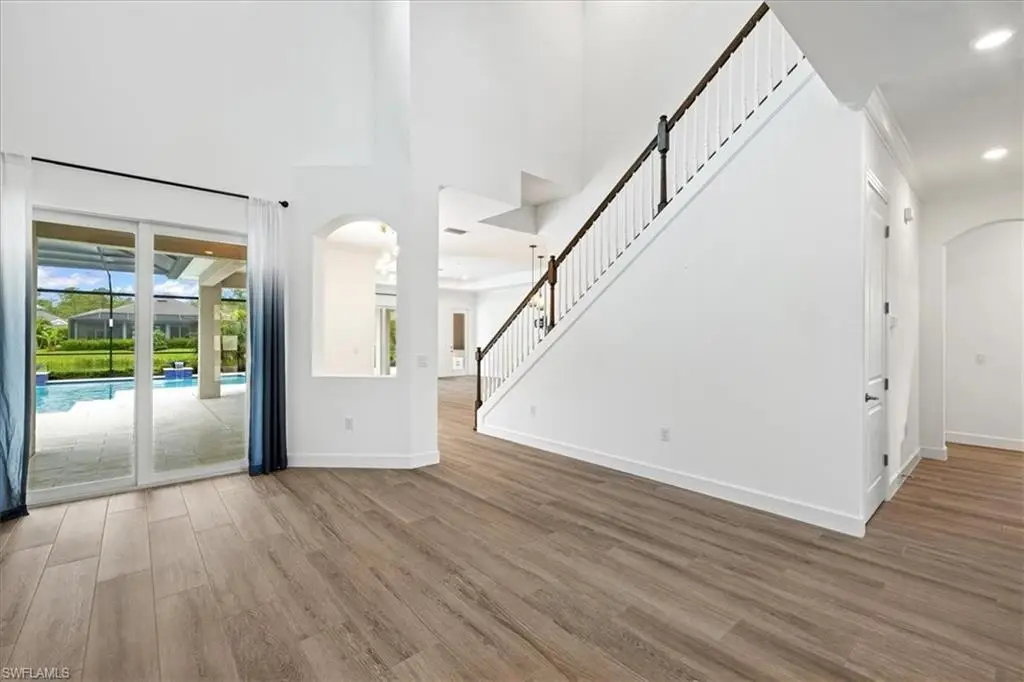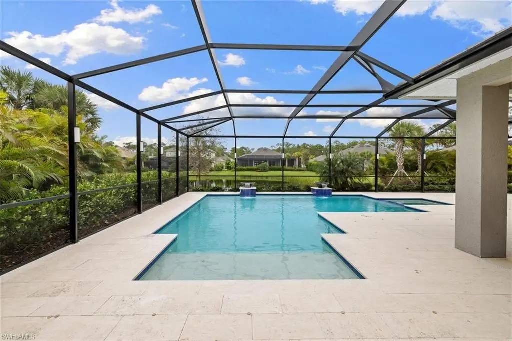 Located in the exclusive, gated community of Sereno Grove, this 2020 estate combines luxury with functionality across its 3,500 sq. ft. of space. The home features 4 bedrooms, 5 bathrooms, a den, a climate-controlled wine room for 1,800 bottles, an upstairs media room, heated pool and spa, a 3-car garage, and extensive patio space with an outdoor kitchen. High ceilings and natural light welcome you, with a design that seamlessly connects the living areas to a chef's kitchen, offering views of the pool and the evening skies. The master suite on the first floor includes a large bathroom, lanai access, and ample closet space. Upstairs, there are 3 bedrooms, 2 bathrooms, and a bonus room with a wine fridge and balcony overlooking the pool. This estate is ideal for those seeking proximity to North NaplesÆ beaches and dining, emphasizing both luxury and practicality for a discerning family. Sereno Grove is a centrally located community with low HOA fees.