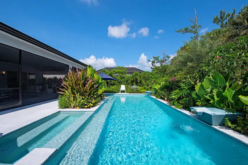 Welcome to one of the most thoughtfully crafted homes in Valencia Trails. Privately nestled along a tranquil preserve, surrounded by lush tropical landscaping, this spectacular Captiva model is a masterpiece, blending modern elegance with peaceful seclusion. Step through the glass front doors into a soaring foyer featuring an intricate marble inlay set seamlessly into the surrounding French white oak hardwood flooring that flows throughout the main living areas. At the heart of the home, a chef's dream kitchen awaits; designed to impress & equipped to perform. Sleek Eurocraft Reflekt acrylic cabinetry, expanded by 9 feet into the dining space, has soft-close drawers, multiple custom cabinet inserts & pull-outs, and ambient cabinet lighting. A striking porcelain backsplash complements the quartz countertops, while an oversized island offers generous prep space, additional storage & effortless flow for entertaining. The Thermador Professional Series appliance suite includes a side-open convection oven, freedom induction cooktop, speed oven-microwave, Sapphire dishwasher & a column refrigerator. Sub-Zero beverage & freezer drawers and a custom vented hood also deliver professional-grade performance. The great room showcases a striking custom feature wall & is framed by views of the lush preserve through impact-rated sliding glass doors. Outside, the thoughtfully graded lanai has a step-free surface for enhanced safety & the White Ice marble pavers offer an elevated, coastal aesthetic. A Kings Starboard cabinet system adds storage & functionality. The saltwater pool is a standout-35 feet in length with an integrated spa, a sundeck & elegant water bowls for a serene, resort-like experience. Heated by gas, the pool & spa are ready for year-round enjoyment. The extended covered lanai is framed by an invisible screen enclosure and the tranquil preserve view makes this outdoor oasis very private & picturesque. The primary suite offers a spa-inspired bath with an oversized rain shower, soaking tub, dual vanities with Eurocraft cabinetry & 3 generously sized custom walk-in closets. There are 3 additional en-suite guest bedrooms, one featuring built-in bunk beds. An expansive den with a custom built-in entertainment wall provides flexible space for a home office, media room, or additional living area. Fine features include solid core doors, hurricane impact windows & doors, extensive millwork & shiplap, curated lighting accents, epoxy garage flooring, tankless water heater, fenced dog-run & a custom finished laundry space with GE pedestaled washer/dryer. Valencia Trails is more than a community-it's a lifestyle. This exclusive 55+ neighborhood features world-class amenities, including a 43,000 SF clubhouse with gourmet restaurant, poolside bar, resort-style pools, fitness center, pickleball, tennis, bocce, yoga, art studio, cooking classes, spa, dog park & a vibrant social calendar. This is your invitation to live where everyday feels like a resort getaway.