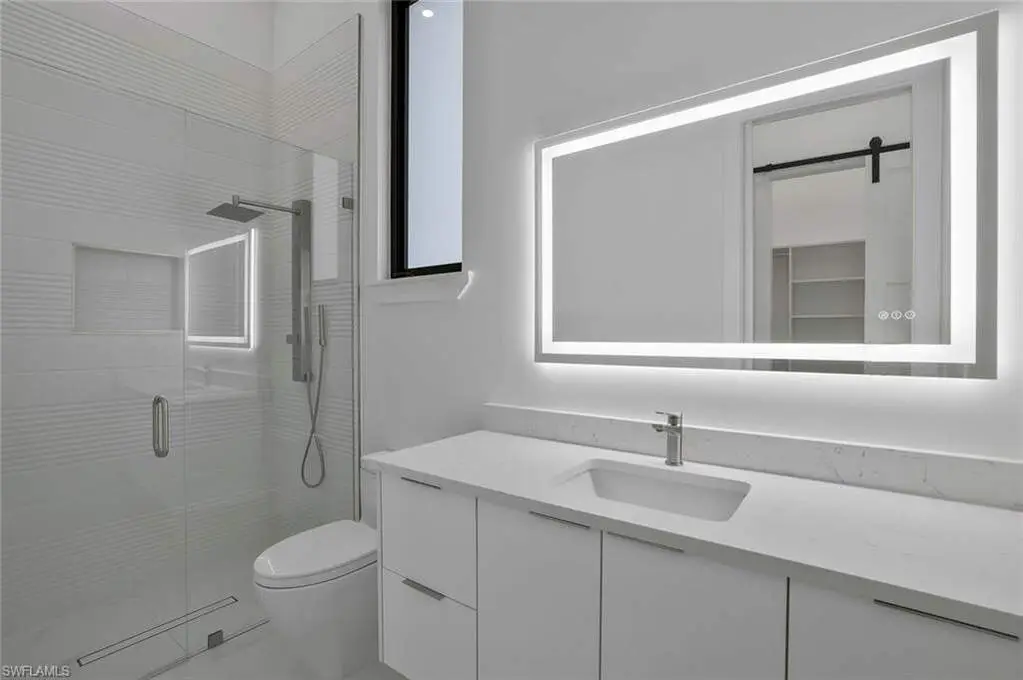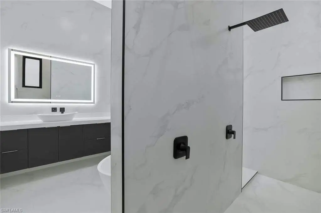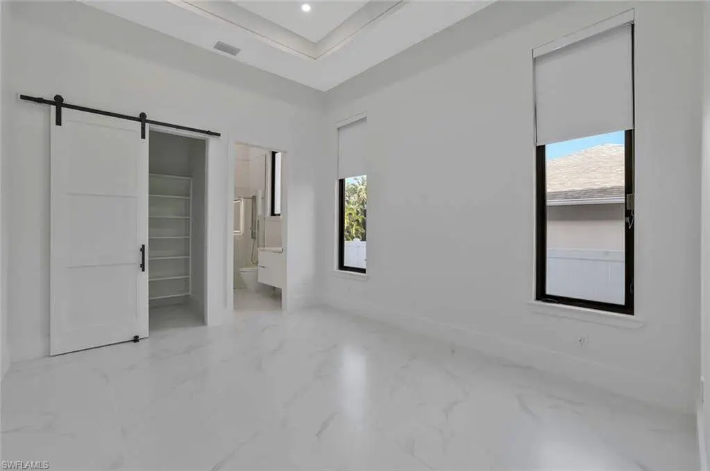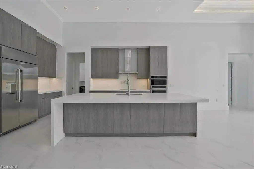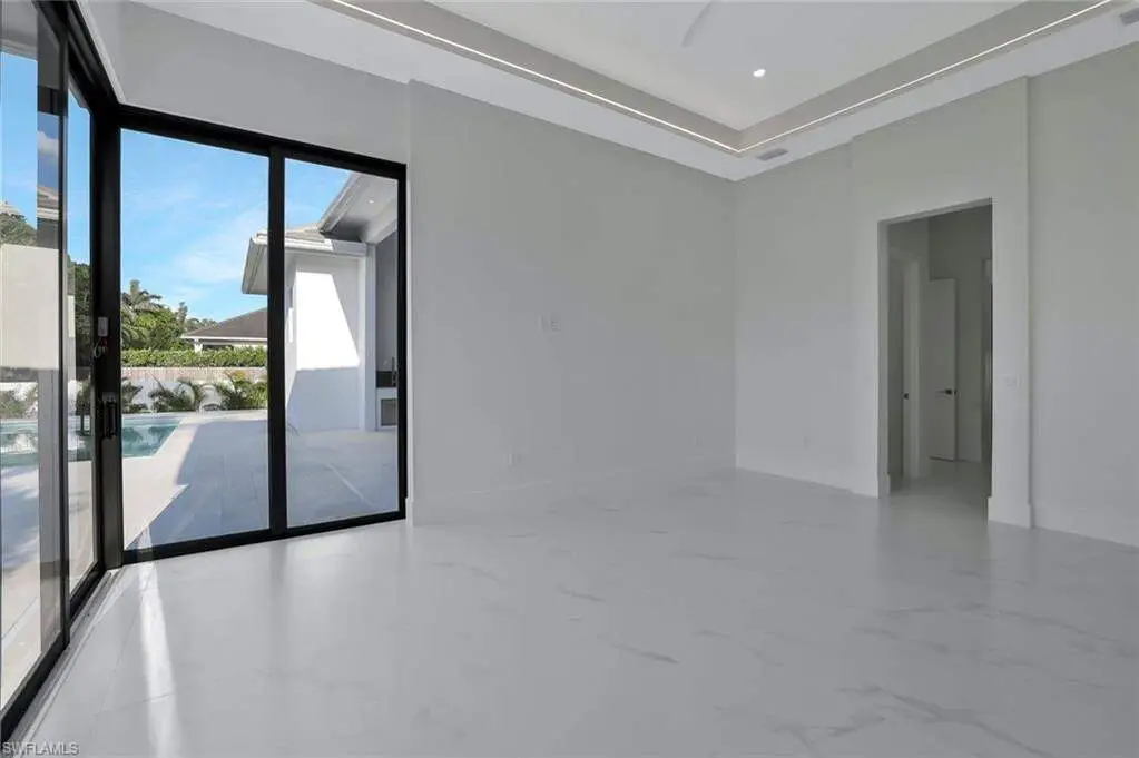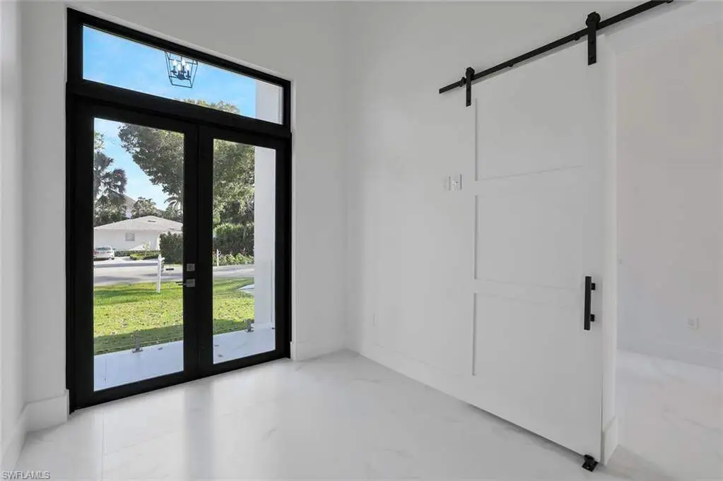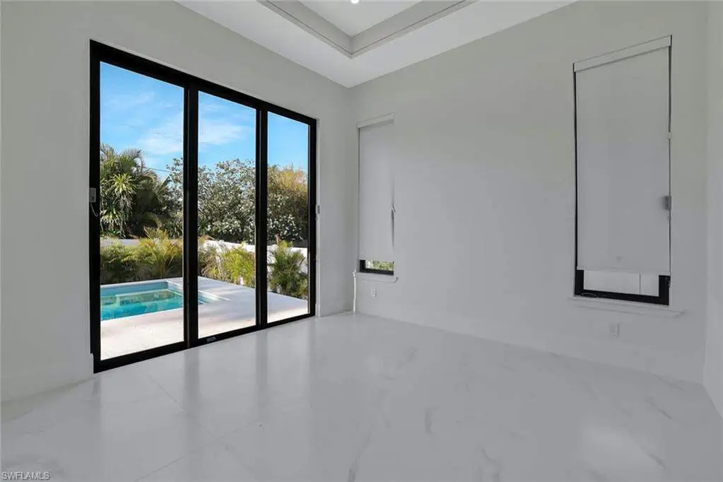 This exceptional new construction home is located in one of the best areas with no flood concerns. Designed with an open-concept layout and soaring ceilings, this residence features 4 bedrooms plus a dedicated office, 4 full bathrooms, and an inviting outdoor oasis complete with a pool and spa. The gourmet kitchen showcases quartz countertops, sleek modern cabinetry, a spacious center island, double oven, and a beverage cooler-perfect for entertaining. The expansive primary suite includes dramatic 90-degree sliders that open directly to the pool area. The luxurious en-suite bathroom features a freestanding tub, oversized shower, dual vanities, and two walk-in closets. One of the front bedrooms offers direct access to a charming front porch terrace, providing a private outdoor retreat. Additional highlights include impact-resistant windows, tile roof, 3-car garage, abundant natural light, and Lutron dimmer switches throughout the home for customizable lighting and ambiance.