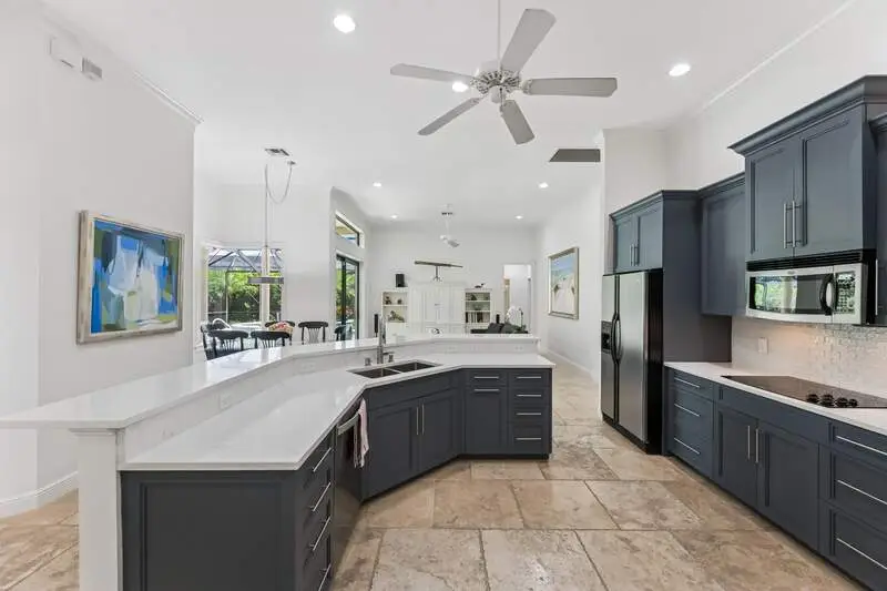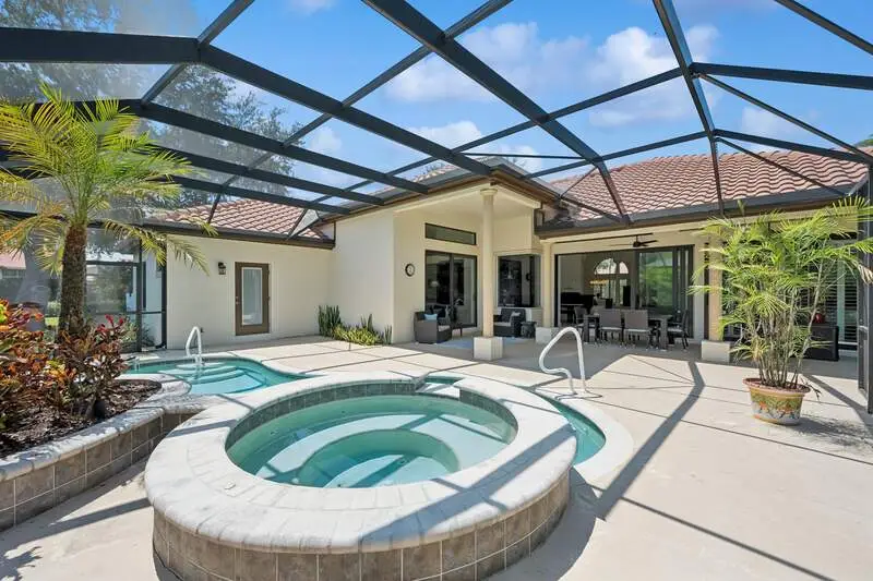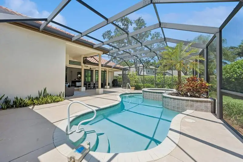 Immaculately maintained 4 bdrm/3 FULL bath home offers it all! An incredible floor plan, soaring 10'+ ceilings, impact windows & doors, private sunny pool & spa with large covered lanai space. Loads of updates throughout including updated kitchen with Quartz countertops & newer cabinetry, updated baths, generous room sizes, pool bathroom, new screen cage, EV charger, and more! Private yard includes mango and banana trees. A fabulous opportunity within the perfectly located & coveted, gated community of Monterey, with 3 har tru tennis courts, state-of-the-art gym, sport/pickleball court, large covered playground, updated pool & clubhouse, all just minutes to beaches, A+ public & private schools, shopping & downtown.