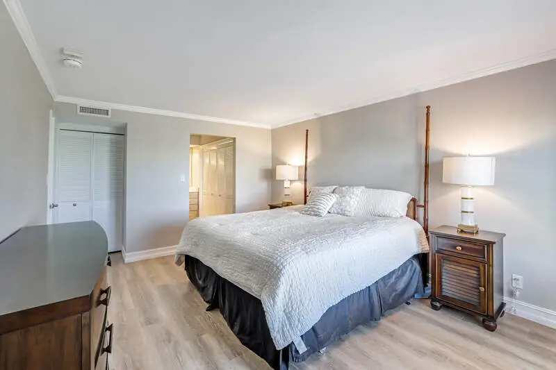 Welcome to your freshly remodeled 3-bedroom, 3-bathroom end-unit condo in the highly desirable Moorings community! Located on the 5th floor of the recently renovated Madrid Club, this residence offers an open, light-filled layout with expansive windows that capture the coastal surroundings. The Madrid Club showcases a fresh, modern redesign and outstanding amenities, including a Bayfront pool, fitness center, social room, card room, outdoor kitchen and party area, kayak racks, and a launching dock with boat slips available for lease. Onsite property management adds peace of mind. Just steps from Naples' award-winning beaches and within walking distance to the upscale dining and shopping of Venetian Village, this home also includes a garage parking space and air-conditioned storage. Optional membership to the exclusive Moorings private beach park is available. This move-in-ready condo is the perfect opportunity to secure your piece of the Naples lifestyle in time for season!