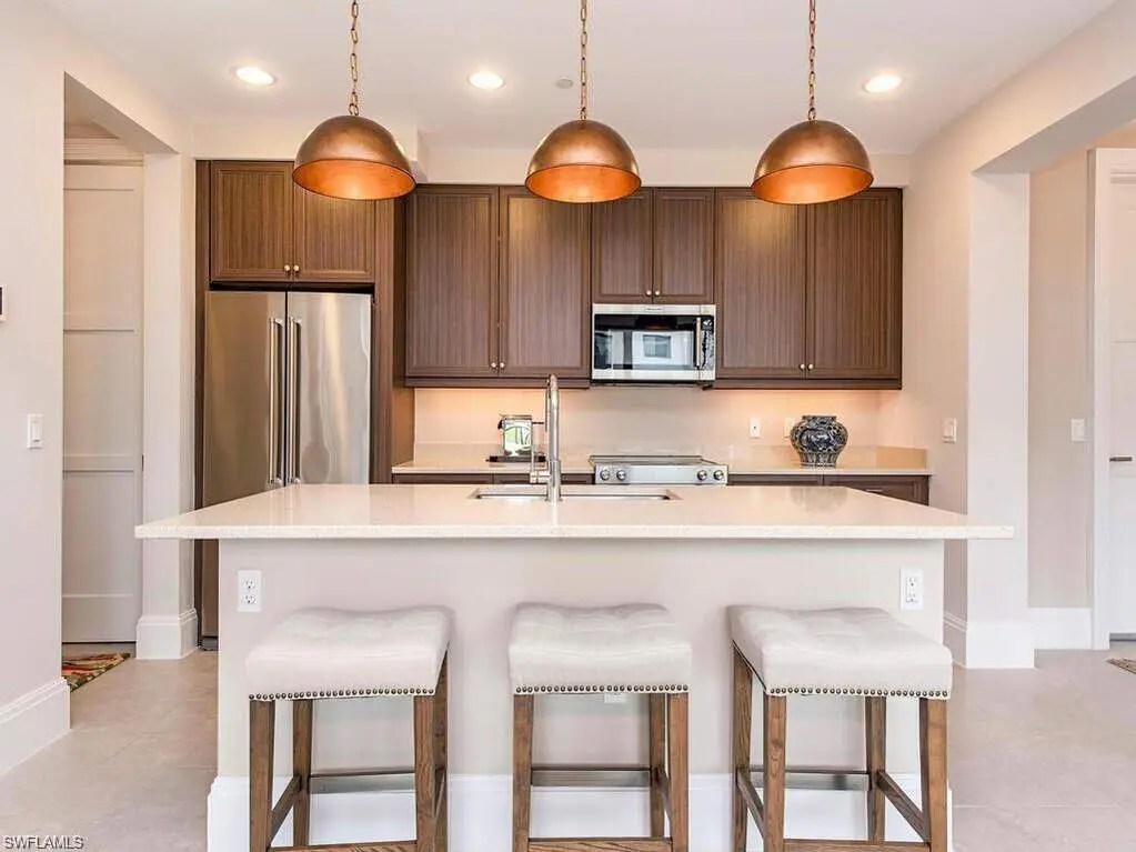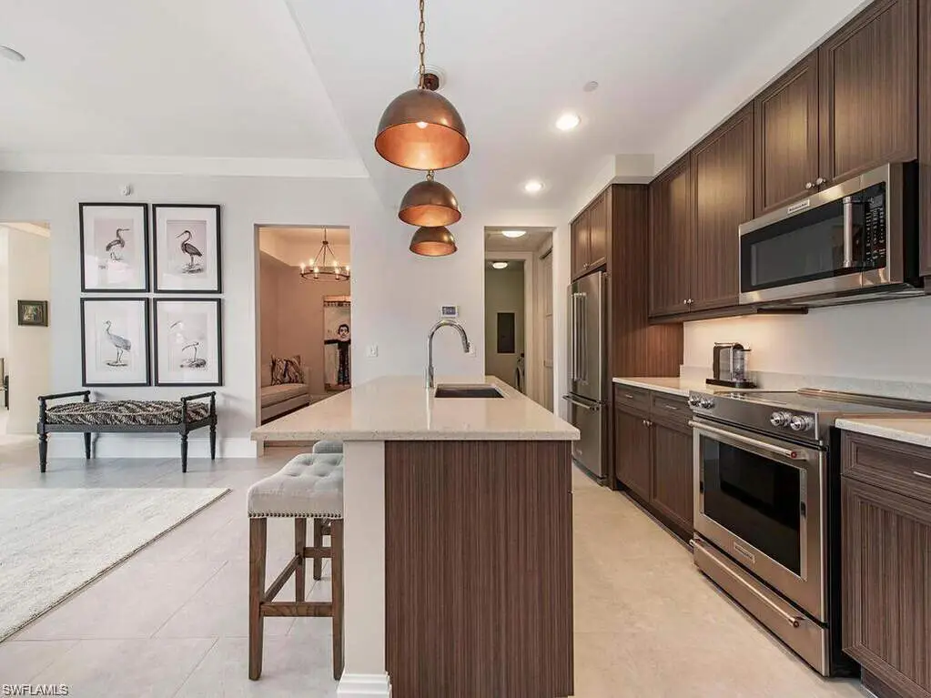 This is an exciting opportunity to enjoy a luxurious, laid-back lifestyle within this gorgeous downtown Naples condo. Stylish details are on show throughout the spacious 1,529sqft Ballard layout while two bedrooms, two bathrooms and a den ensure there's plenty of space to spread out and relax. Sure to make cooking a pleasure, the impeccable kitchen boasts a suite of stainless steel appliances, an island with breakfast bar seating plus views over the living space. A wall of slider doors leads out to the 20x9-foot covered balcony where you can host guests and admire views over the communal courtyard and pool. Naples Square is a lavish pet-friendly community and offers a fitness center, a clubroom, a resort-style pool and spa along with BBQ grills and a fire pit in the courtyard. There's under-building parking and extra storage while this prized location ensures you're never far from everything you could ever need. A short walk will take you to 5th Avenue's renowned shopping, dining and entertainment options while the white sand and crystal clear water of Naples Beach is only moments away.