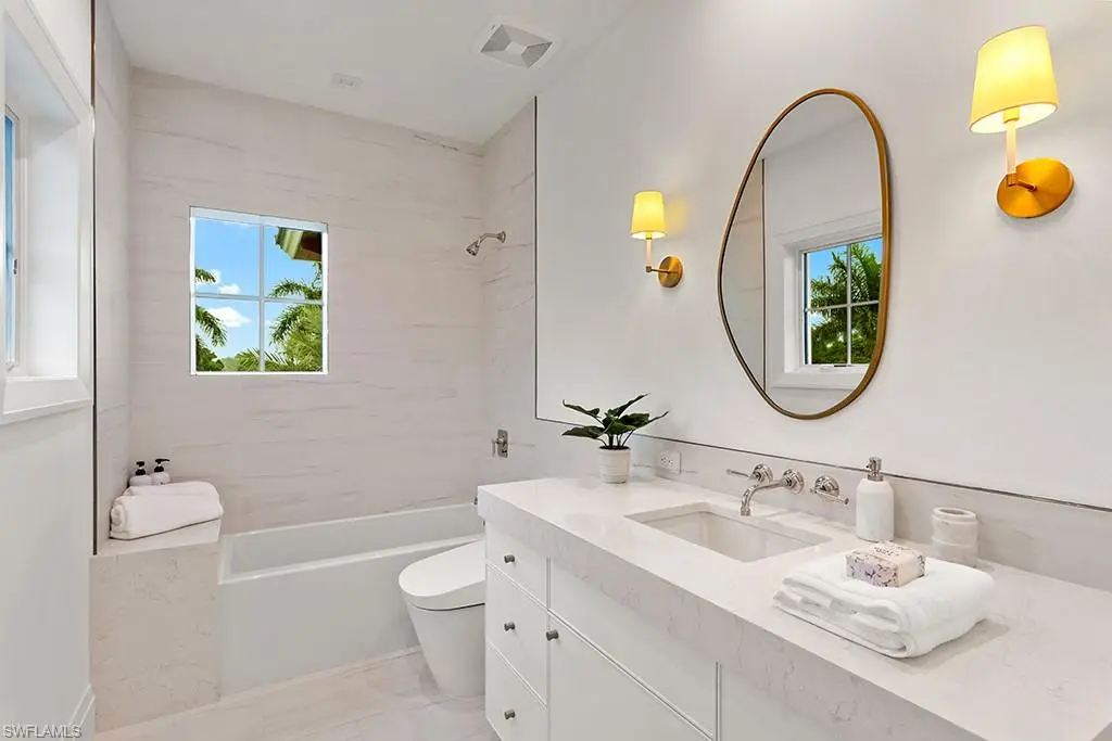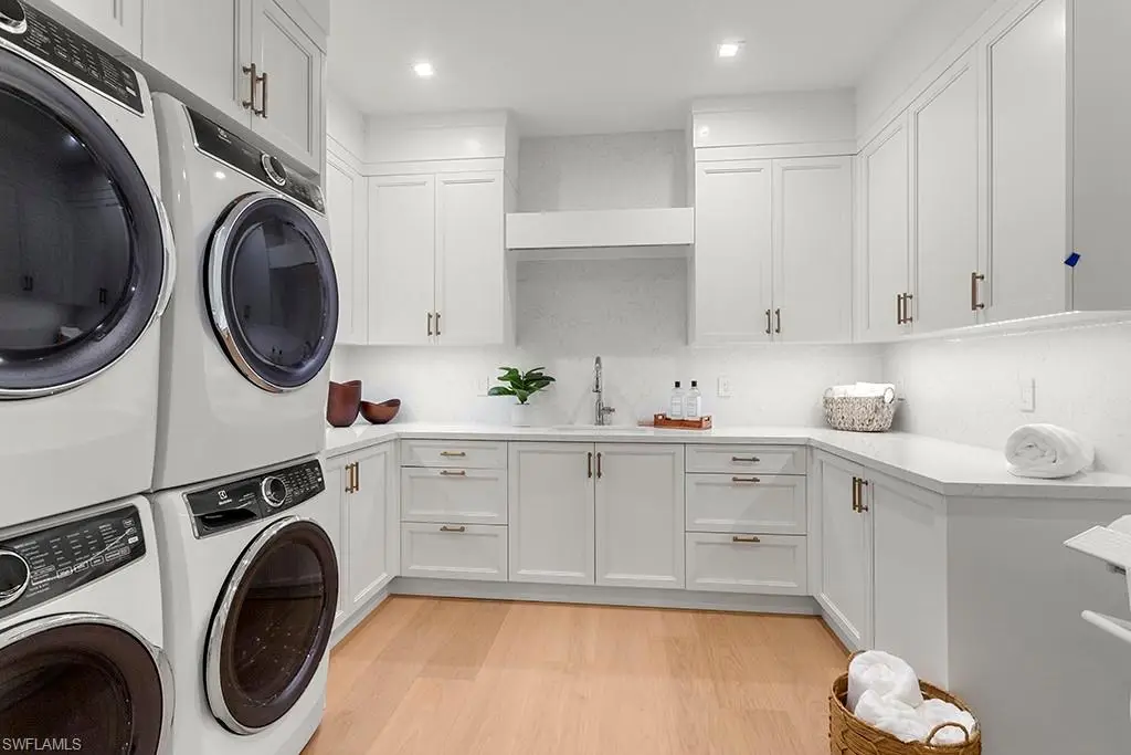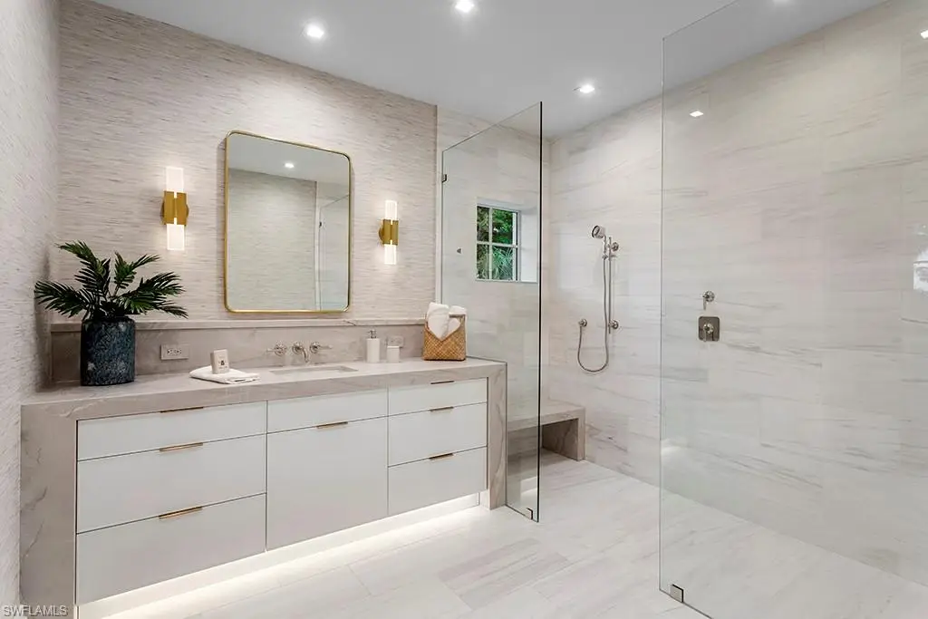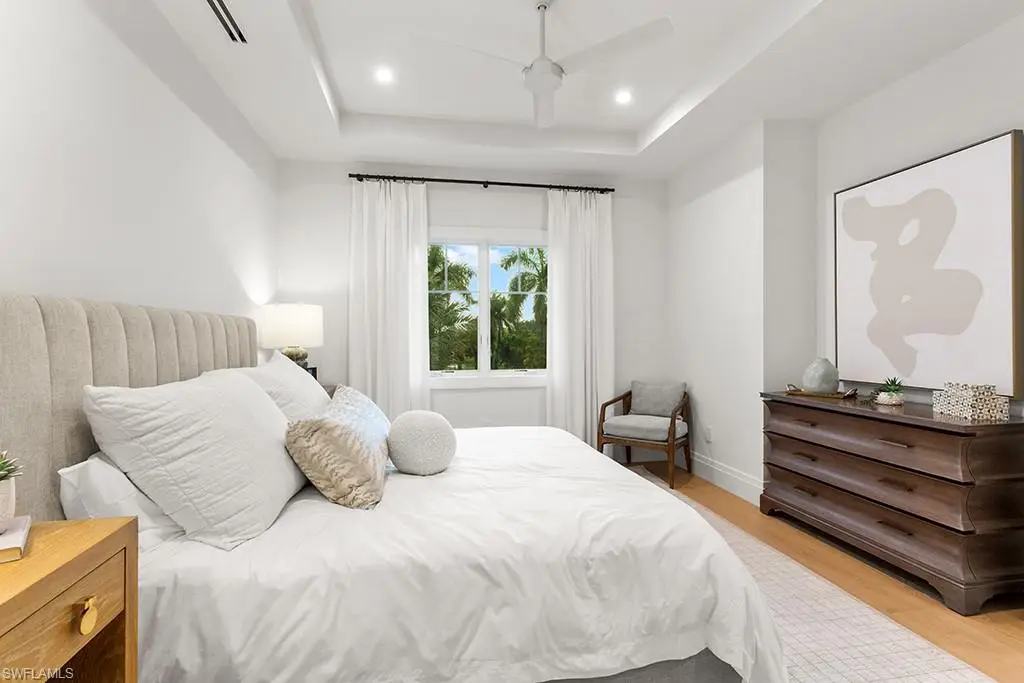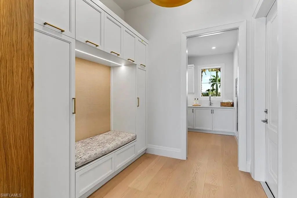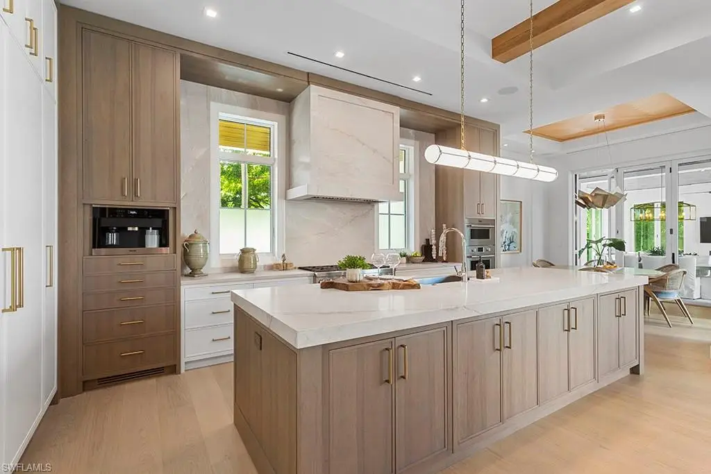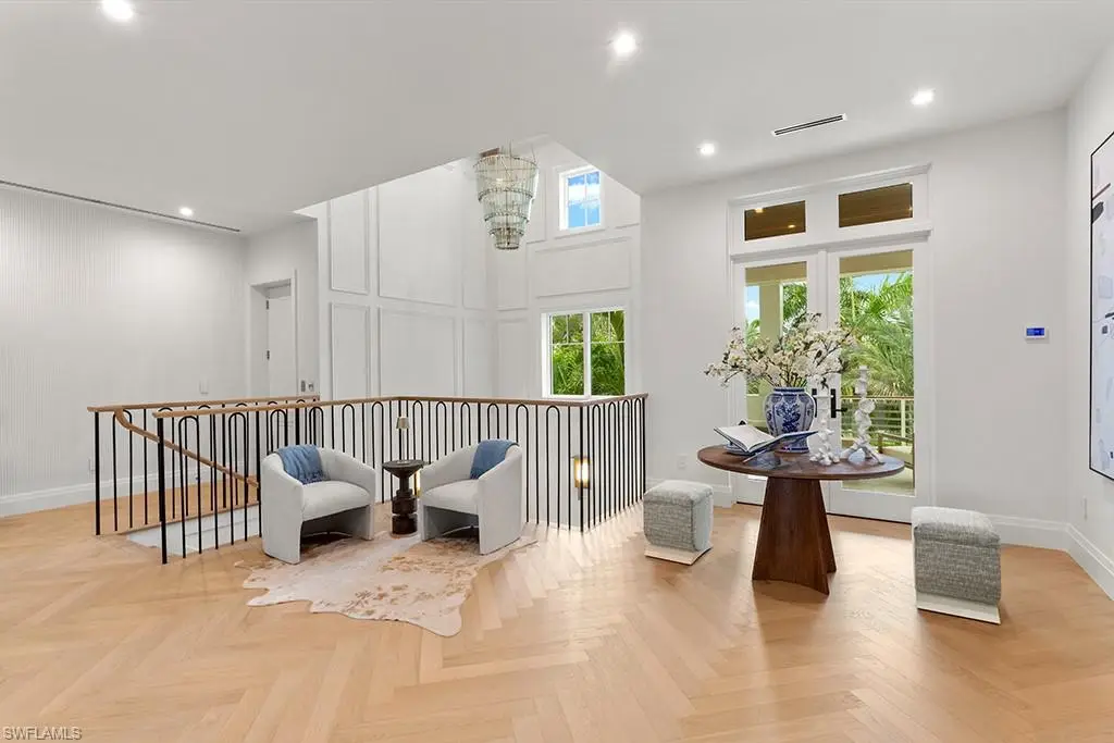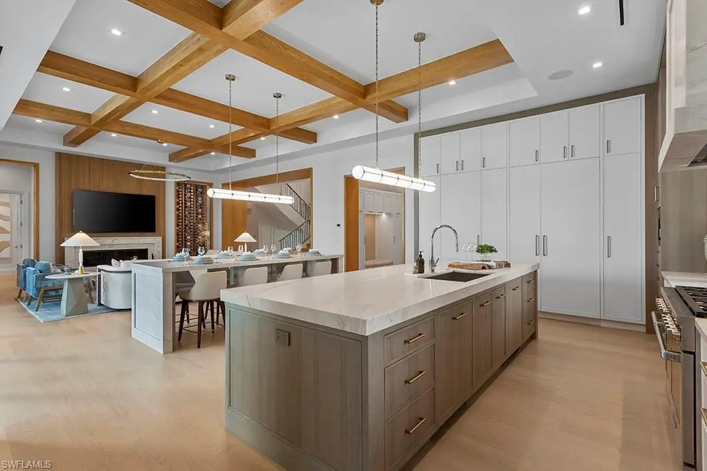 Positioned along the prestigious South Golf corridor in the heart of Old Naples, this newly constructed estate represents an uncompromising standard of residential design, craftsmanship, and functionality. Conceived by MHK Architecture and executed by Lotus Construction's luxury division, the home sits directly across from the Four Seasons Resort and its newly redeveloped oceanfront golf campus - offering unobstructed vistas of fairways and tennis courts in one of Naples' most tightly held locations. Encompassing nearly 7,000 square feet of interior living space, the floorplan is both expansive and deliberately considered. Five oversized bedroom suites are complemented by a dedicated study, seven baths, and a series of spatial volumes designed to accommodate refined living and entertaining at scale. Interiors by Freestyle showcase a restrained yet intentional palette, with premium finishes and bespoke detailing throughout. The kitchen is anchored by an integrated Wolf/Sub-Zero appliance suite, Miele coffee station, and full scullery, while a climate-controlled wine room and concealed bar offer discrete luxury. Every practical need has been anticipated -two laundry centers, a commercial-grade sheet ironer, a full-home rooftop generator powered by natural gas, and seven Toto Neorest intelligent toilets speak to the home's unspoken efficiency. Outside, the custom pool and spa are framed by mature tropical landscaping that ensures privacy without sacrificing connection to the golf course beyond. A Crestron automation system governs lighting, climate, security, and entertainment, delivering seamless control at every level. The three-car split garage supports discreet entry and storage, completing a property that operates with the precision of a well-run estate. Created by EMB Custom Homes, this residence is offered fully furnished and available for immediate occupancy. It is a rare convergence of architectural integrity, locational relevance, and turnkey readiness - suited to the discerning buyer who expects both substance and style.