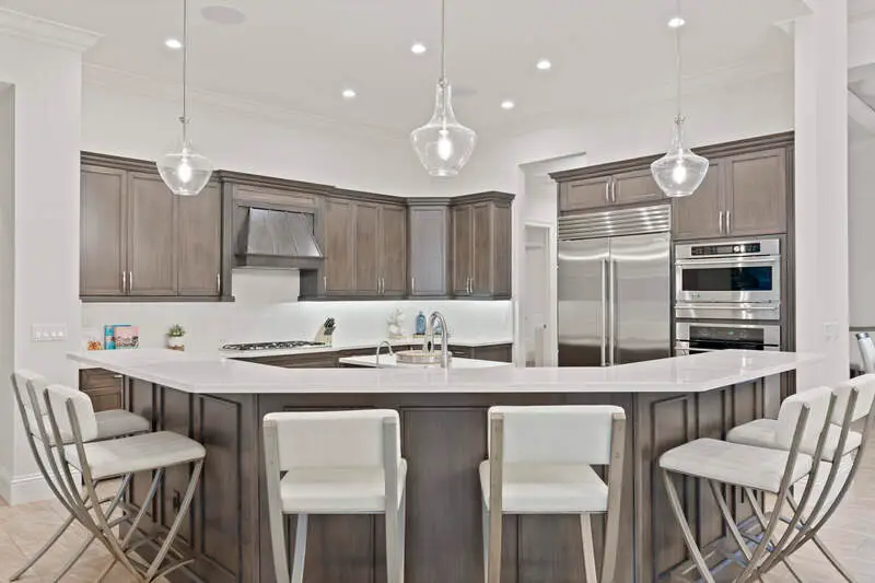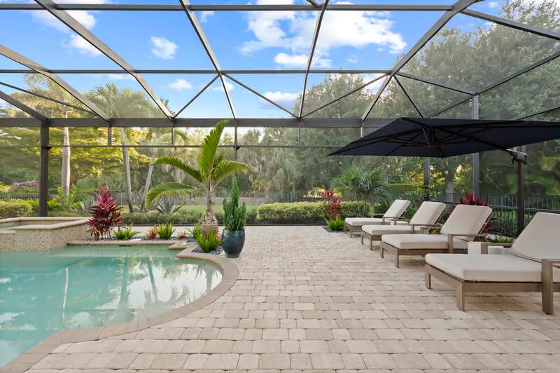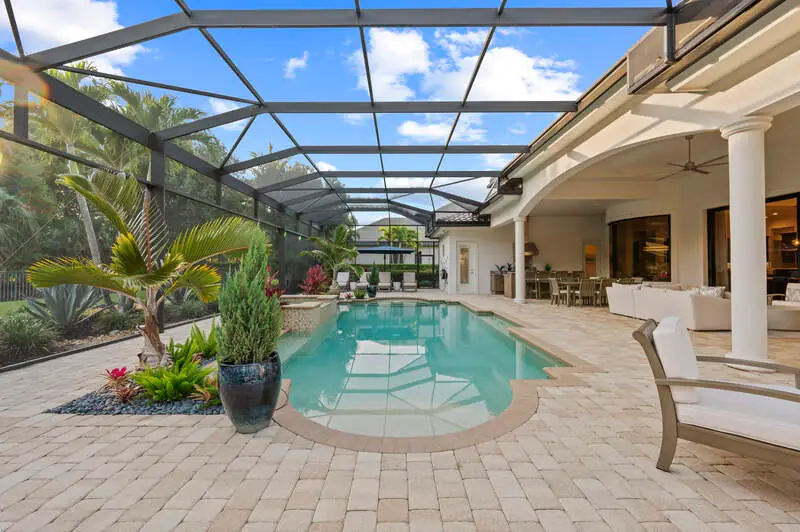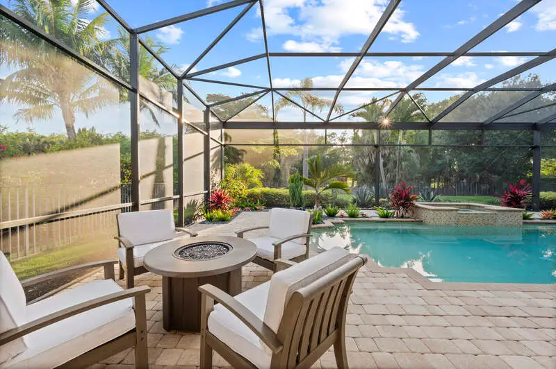Experience the perfect blend of comfort and style in this newer yet freshly upgraded home thoughtfully inspired by Cardamom Design. Offering the most sought after southwest exposure, the screened lanai features various areas for relaxing, a full outdoor kitchen, built-in fireplace and inviting fire pit plus all-day sun and magnificent evening sunsets. The indoor/outdoor flow delights with a bright, open floor plan and premium finishes end to end- including a gourmet kitchen with upgraded appliances, newer countertops, custom cabinetry and wrap-around island for easy entertaining, a soaring great room with built-in tv wall and wine cooler and clever architectural touches throughout. The primary suite is a private oasis with a spa-like bath and generous walk-in closets while the overall floor plan flawlessly functions to allow privacy for owners and visitors alike. Dine al fresco or step inside to a separate dining room with built-ins or a casual breakfast area. Recently painted inside and out with many upgrades such as an air-conditioned 3-car garage with new built-in storage, Sonos sound system, custom closets and whole house generator, this home captivates at every turn.