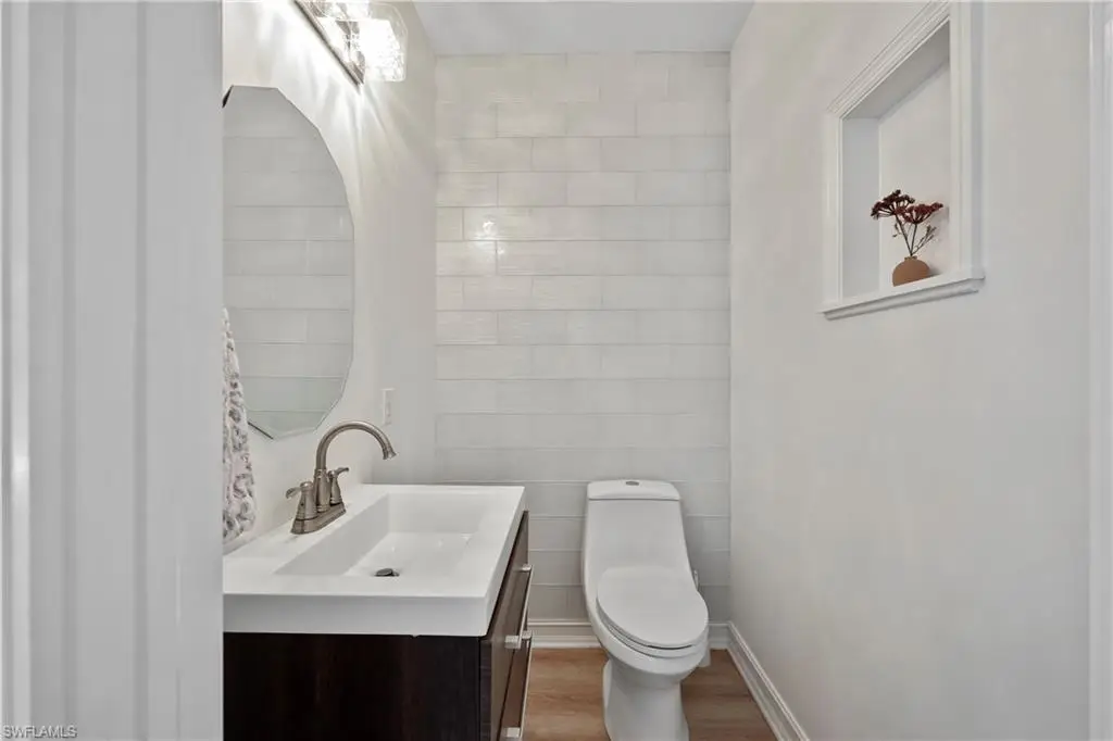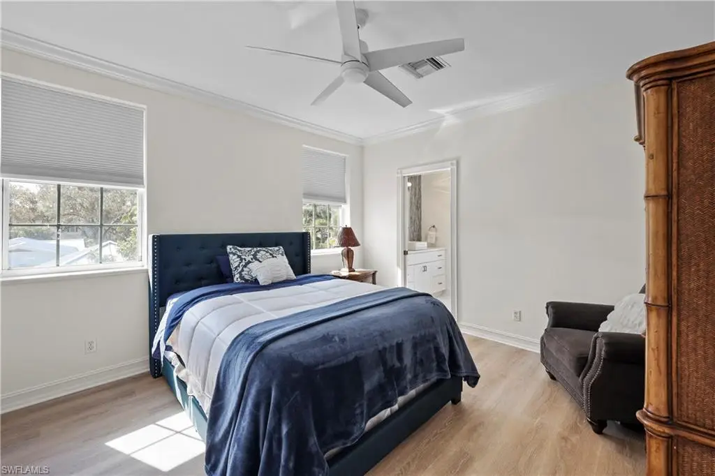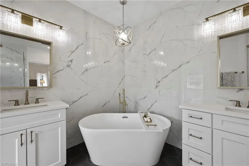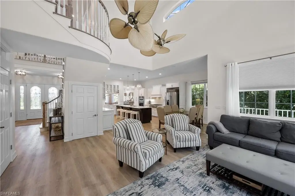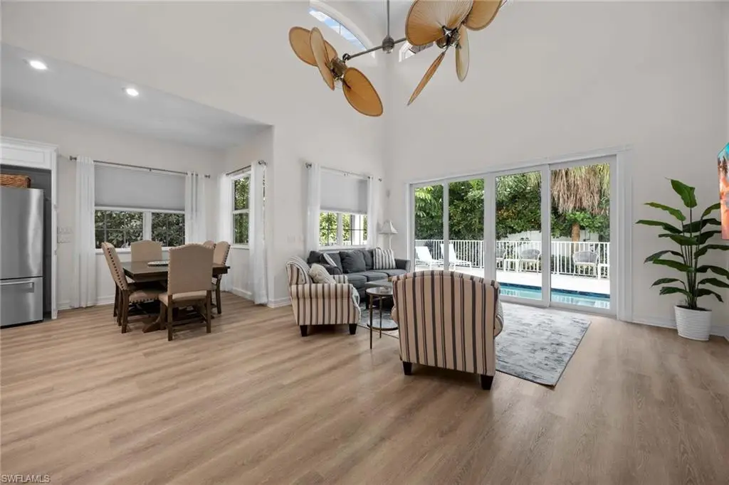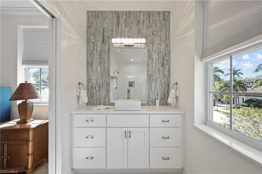 This beautiful Old Naples Key West architectural gem, recently renovated, reflects today's lifestyle. Just steps from the white sugar sand beaches of the Gulf and a short stroll to both 5th Avenue and 3rd Street quaint boutiques and upscale restaurants, the home has over 3,600 square feet of interior living space. Beyond an expansive front porch, you enter through large glass double doors into a foyer with soaring ceilings leading to a formal living room with fireplace, adjacent study, separate dining room, powder room, and an upgraded kitchen with stainless steel chef's appliances and large center island. The kitchen opens to a large family room with double volume ceilings and French doors leading out to a sparkling new saltwater pool and luxurious spa with surrounding deck. Upstairs are three large bedrooms including a sumptuous primary suite with balcony and luxurious bath with separate shower, soaking tub and double vanities. Two additional en suite bedrooms and a large front patio complete the upstairs. Large two car garage with lots of storage is accessed by an alley. Don't miss this opportunity to enjoy the superb Naples lifestyle.