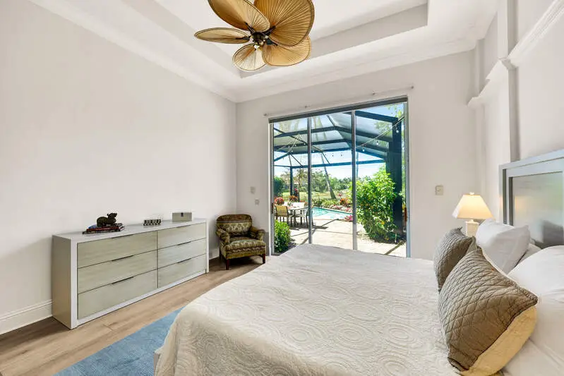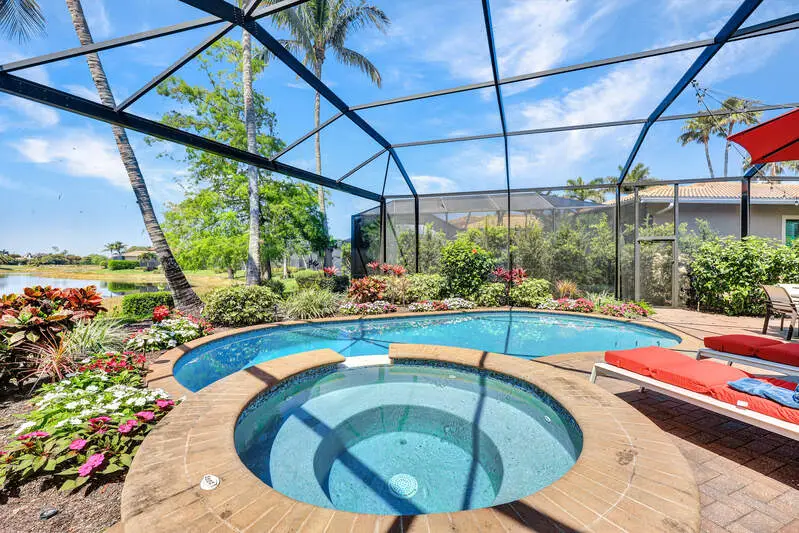 Experience one of the finest views in Olde Cypress with this elegant and meticulously updated pool home. Featuring 4 bedrooms, 4.5 baths, and a coveted private guest casita, the residence overlooks a serene pond and the 10th green, with coveted western exposure providing spectacular sunset views. Inside, soaring 14-foot ceilings with crown moulding throughout create an open, sophisticated atmosphere. The home has been extensively renovated to blend modern luxury with timeless appeal. Updates include fresh interior and exterior paint, new flooring throughout (2024), a complete kitchen remodel with Thermador appliances (2024), and a redesigned laundry room (2024). Major improvements also ensure long-term peace of mind, including a new roof (2022), new A/C system (2021), and two new water heaters (2021). Outdoor living is equally impressive. A picture-frame lanai cage (2018) frames unobstructed golf (10th green) and water views, while the pool and spa were fully refurbished in 2018. A new pool pump (2024) adds further reliability. This home is move-in ready with thoughtful enhancements inside and out. The Club at Olde Cypress is a premier destination for golf and social living. The Audubon-certified, P.B. Dye-designed golf course offers both challenge and beauty. The 34,000 sq. ft. clubhouse is currently undergoing a spectacular renovation (with no member assessments), scheduled for completion by year-end. Enhancements include a covered outdoor bar, balcony firepits overlooking the course, bocce courts, golf simulator bays, and reimagined dining and lounge spaces. This outstanding property offers a harmonious blend of luxury, privacy, and convenience in one of Naples' most desirable golf communities. Whether entertaining in spacious living areas or relaxing by the pool at sunset, this residence provides the ultimate in comfort and style.