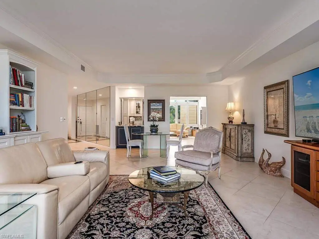 Steep with natural light and beautifully updated throughout, this 2-Bedroom + Den/Flex, 2.5-Bath residence is perfectly situated within The Crescent at Pelican Bay, one of Naples' most sought-after communities. A bright, open-concept layout create an inviting atmosphere with gorgeous views from each room. Porcelain tile flooring throughout flows seamlessly through the spacious living areas, connecting effortlessly to an enclosed lanai-expanding the living space and providing the perfect setting for entertaining or enjoying the lush tropical surroundings and vibrant southwestern sunsets. The thoughtful split-bedroom floor plan ensures privacy for both owners and guests. The owner's suite offers a luxurious retreat with a large walk-in closet, additional linen storage, and a spa-inspired bathroom with a walk-in shower and separate soaking tub. The guest suite is equally impressive, featuring its own private bath, walk-in closet, balcony, and storm protection. A conveniently located powder room serves visitors with ease. Just off the kitchen, a versatile den provides flexible space for a home office or can be converted into a third bedroom if desired. The kitchen is a standout, showcasing Level 5 granite countertops, custom cabinetry, premium appliances, and full-height cabinets for ample storage and a polished, contemporary look. Additional highlights include 9-foot ceilings, impact-resistant sliders, storm shutters, abundant natural light, and a rare oversized two-car garage located only steps from the elevator, complete with epoxy flooring, a dehumidifier, and a cedar-lined storage closet. With only two residences per floor, the property offers exceptional privacy and a boutique atmosphere. Elevated 12 feet above sea level and never impacted by storm surge, this home offers both elegance and peace of mind. As a resident of Pelican Bay, you'll enjoy exclusive access to all its premier amenities, including 2 PRIVATE BEACHFRONT restaurants/bars, attended beach service, kayaks, paddle boards, 18 Har-Tru tennis courts, fitness center, pickleball coming soon, and scenic nature trails for walking and biking. Perfectly situated near Artis Naples, Waterside Shops, and Mercato, this residence provides unparalleled convenience to world-class shopping, dining, and entertainment options.